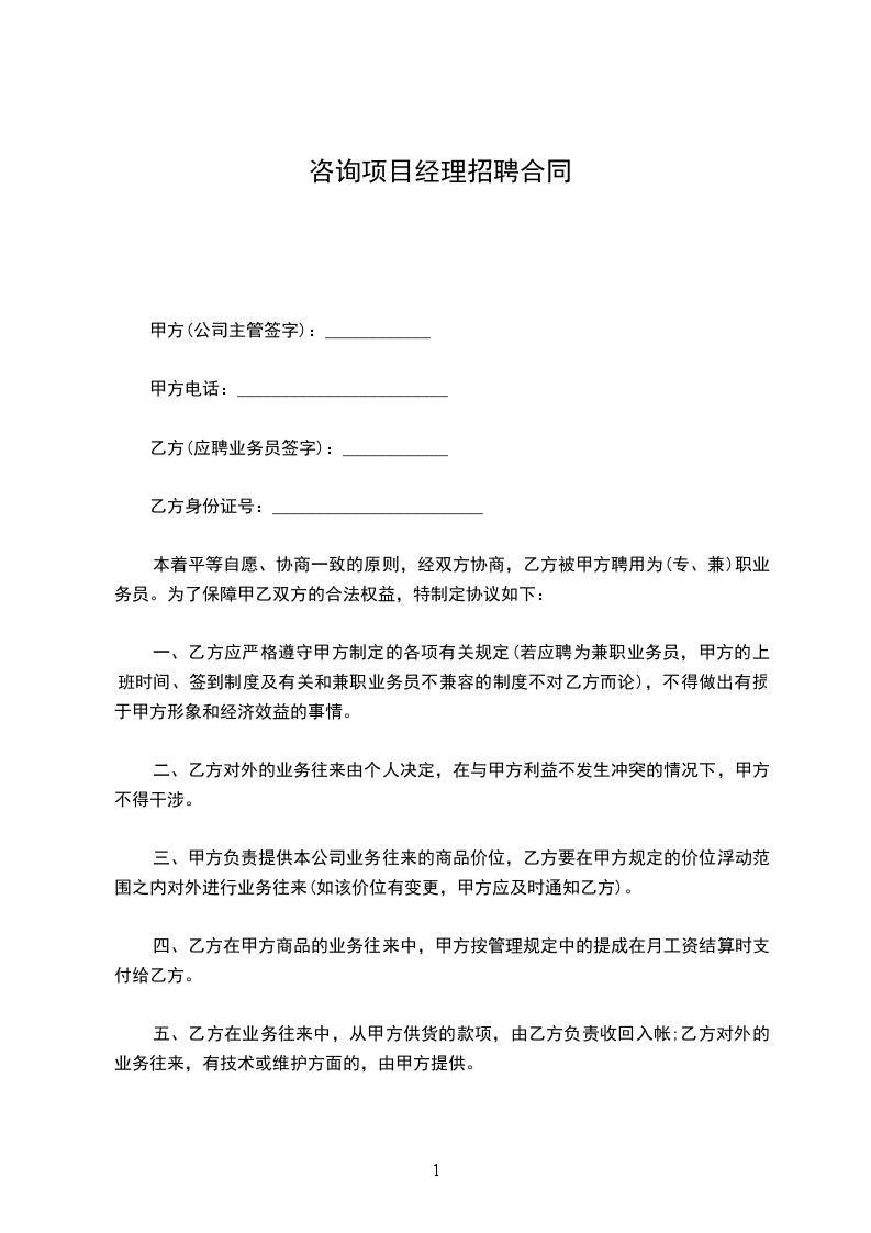 七、乙方每周向甲方汇报自己的业务开展情况,以作为甲方下一步市场业务开展的参考。 以上协议经双方签字后生效。