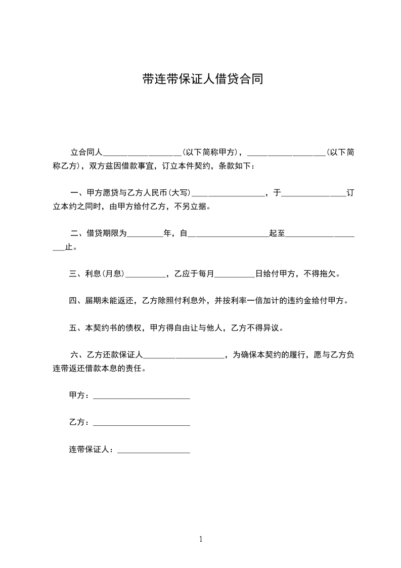 七、本合同一式两份,双方各执一份,自签字之日起生效。 补充规定: 甲方(签字): 乙方(签字): 保证人(签字):________年月____日