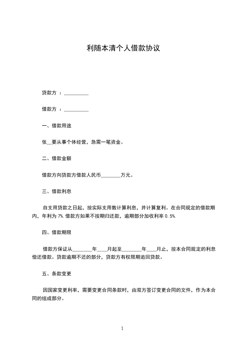 三、借款利息:借款利率为月利息%,按月收息,利随本清。