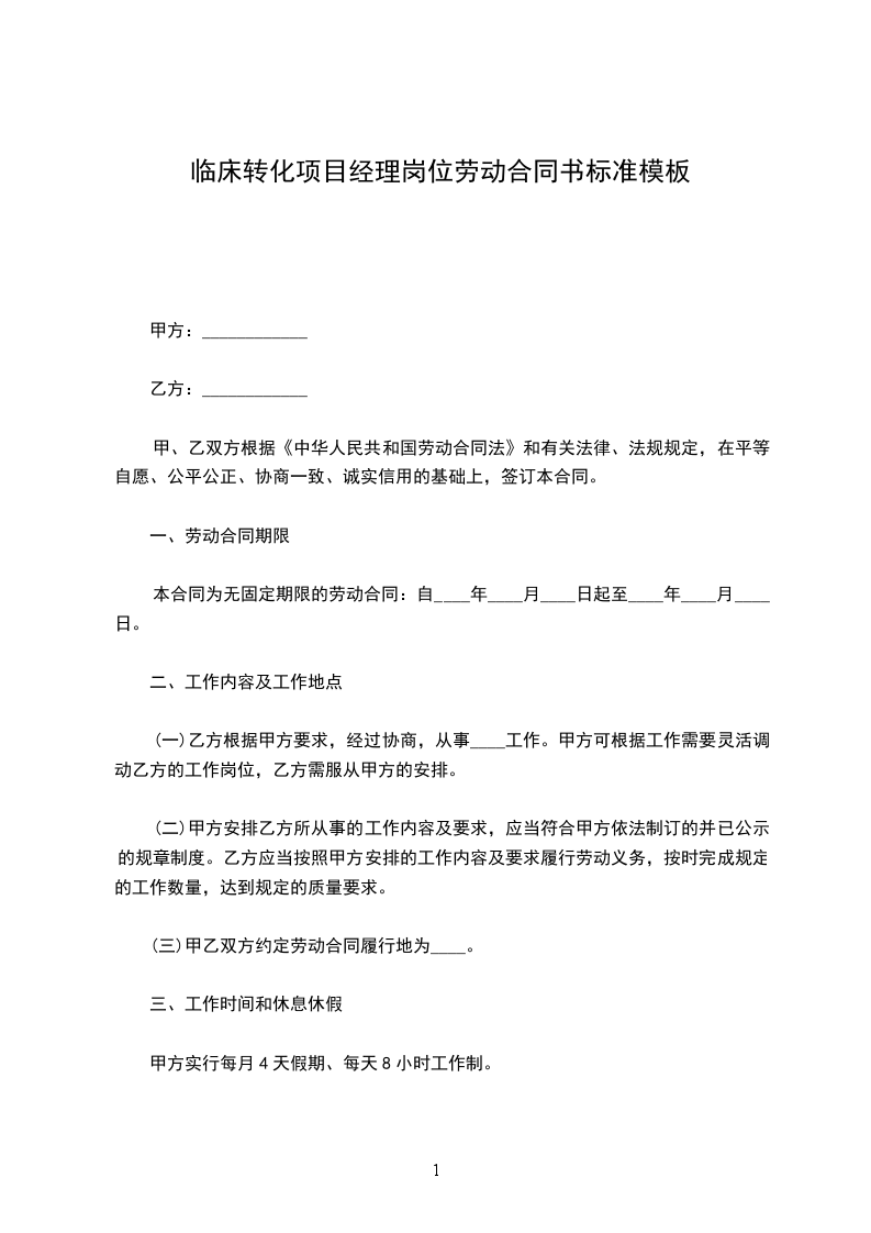 第二条乙方同意根据甲方生产(工作)需要,从事__________岗位(工种)工作,乙方工作地点在______________________________。