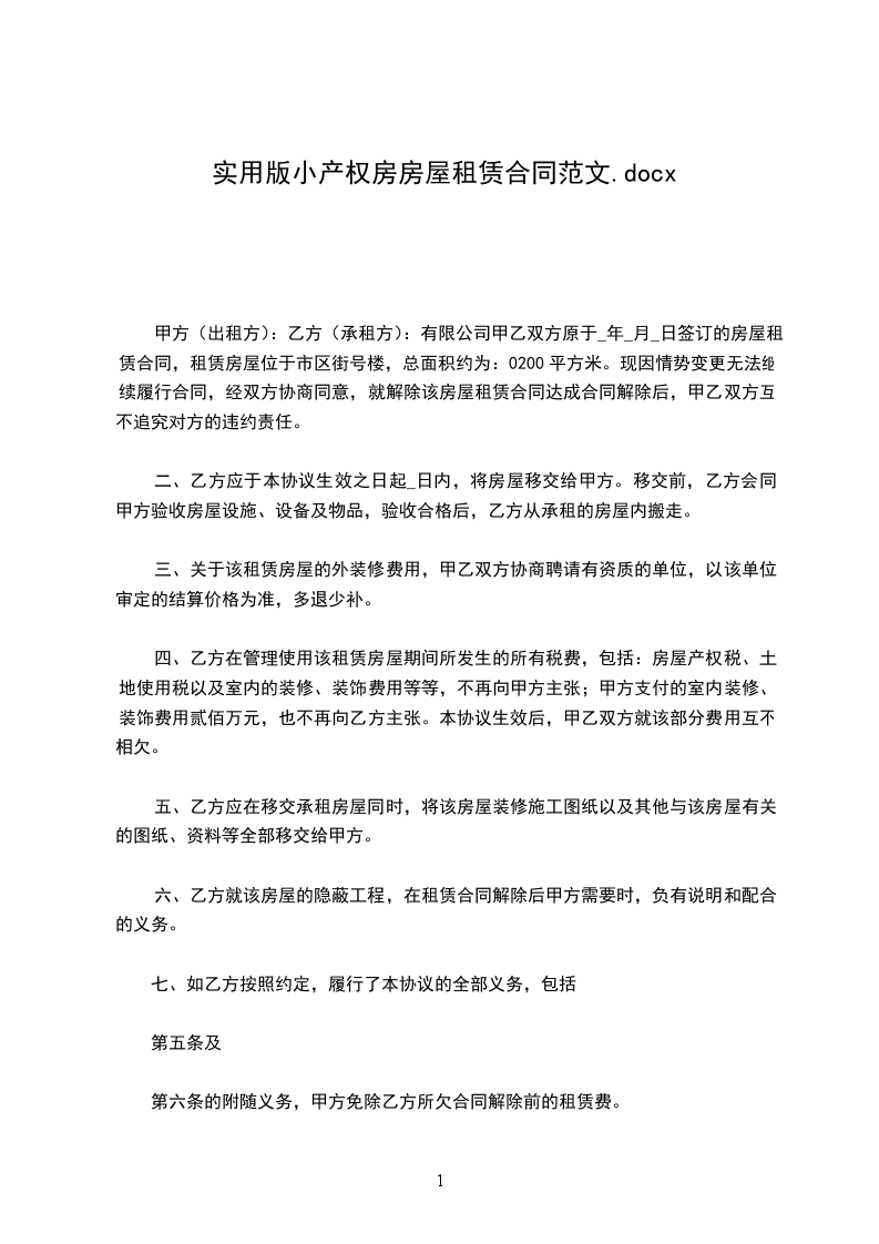 5、甲方保证该房屋无产权纠纷。如遇拆迁,乙方无条件搬出,已交租金甲方按未满天数退还。