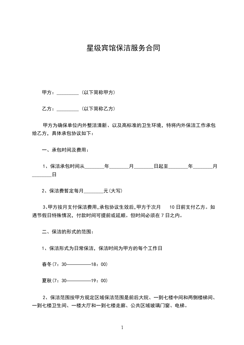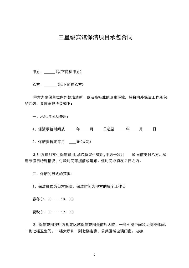 1、保洁承包时间从 _____年_____月_____日起至 _____年_____月_____日