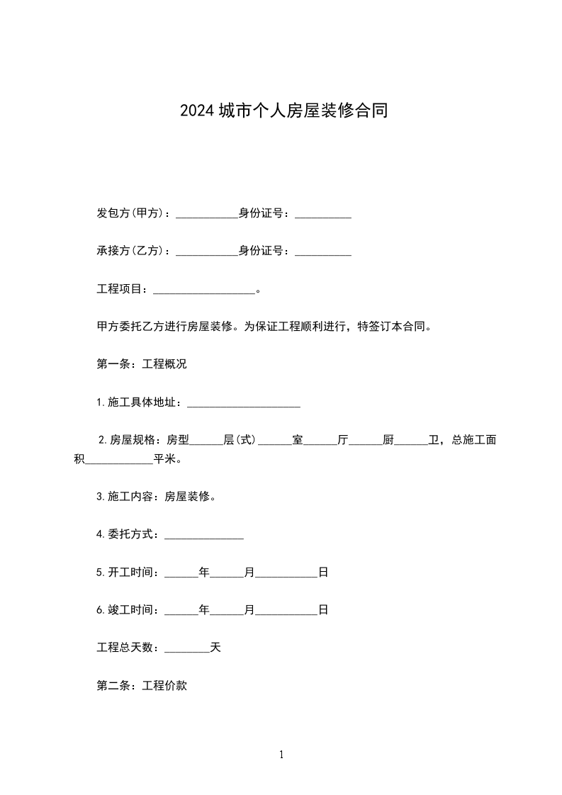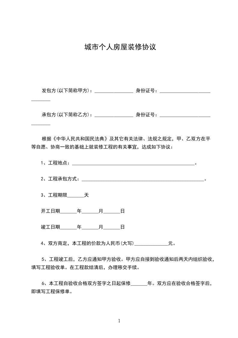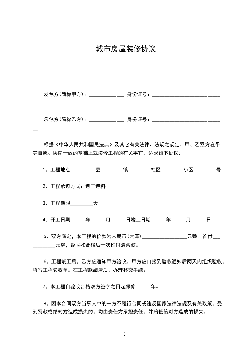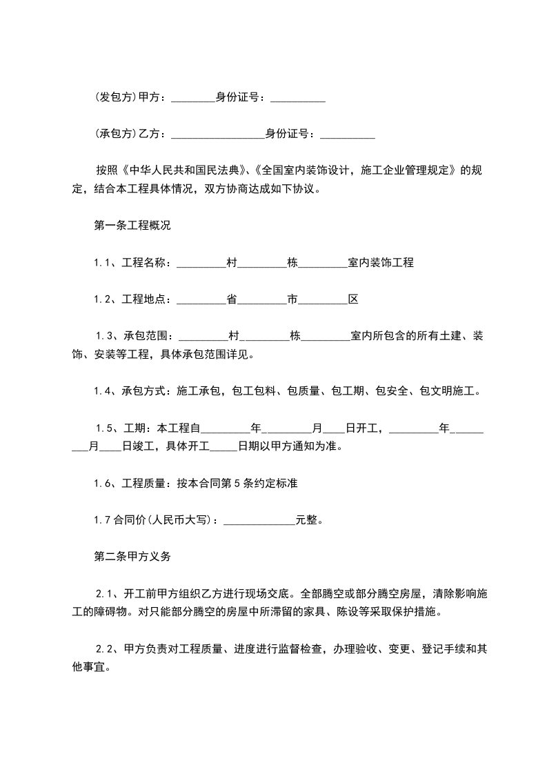 发包方(以下简称甲方):________________ 身份证号:_____________________________
