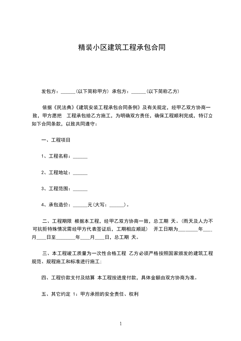 依据《民法典》《建筑安装工程承包合同条例》及有关规定,经甲乙双方协商一致,甲方愿把 工程承包给乙方施工,为明确双方责任,确保工程顺利完成,特订立如下合同条款,以致共同遵守: