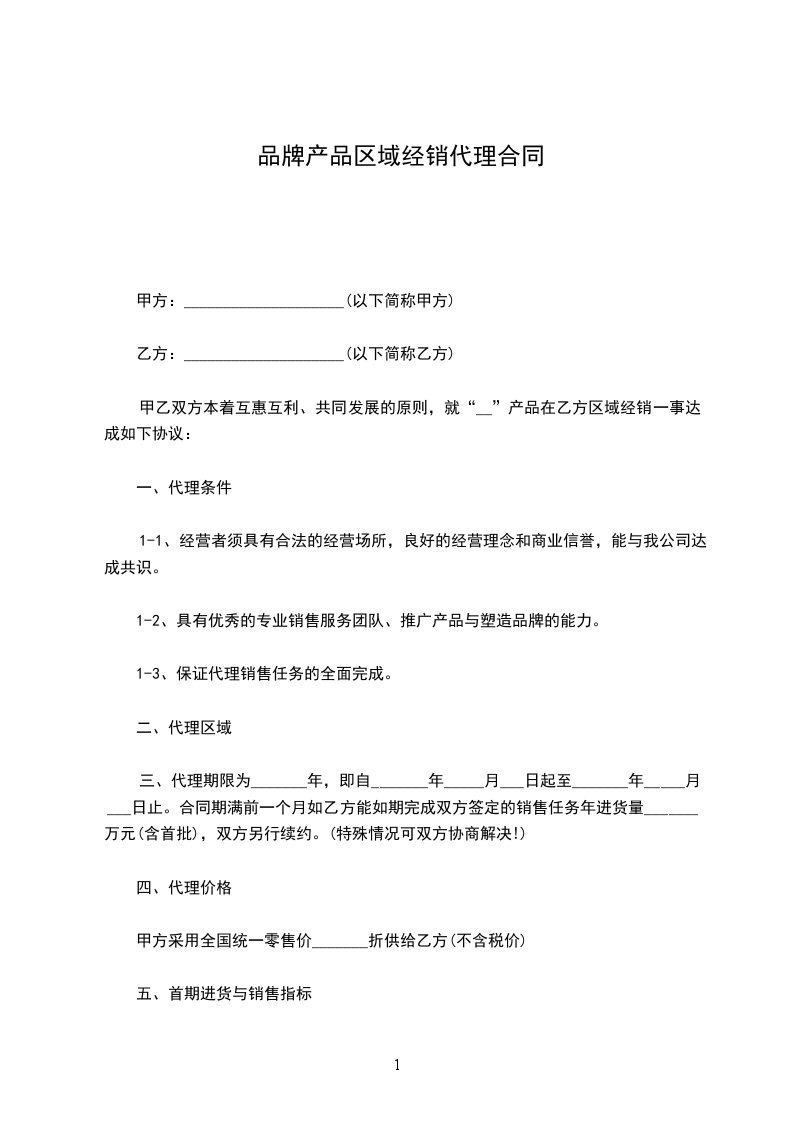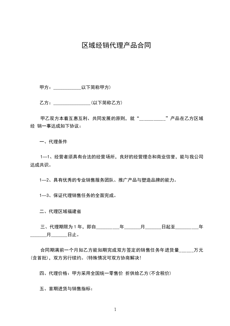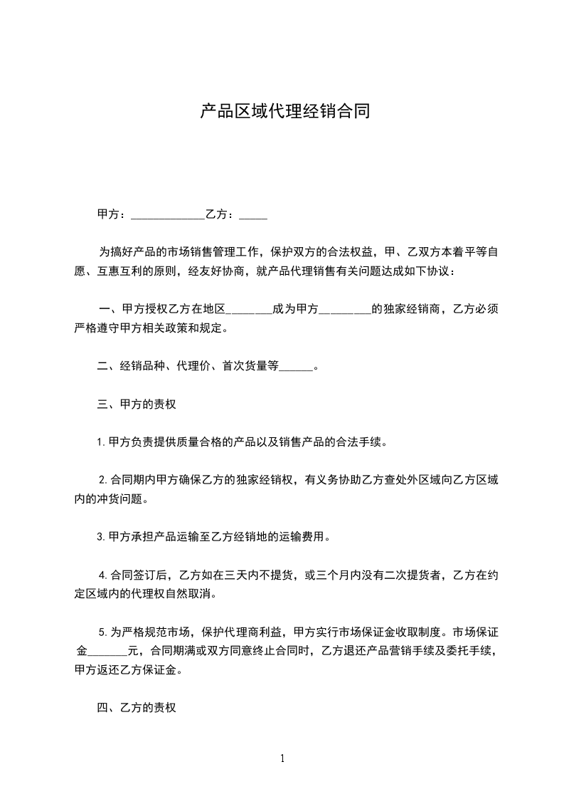 七、甲方不得在指定地区以外销售,如非指定地区内销售须向甲方提交申请另行协商。