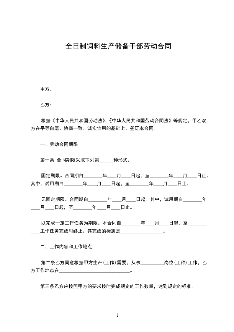 第一条 合同期限采取下列第______种形式:
