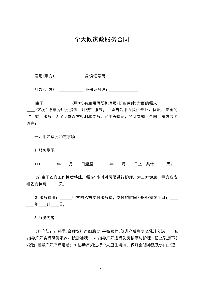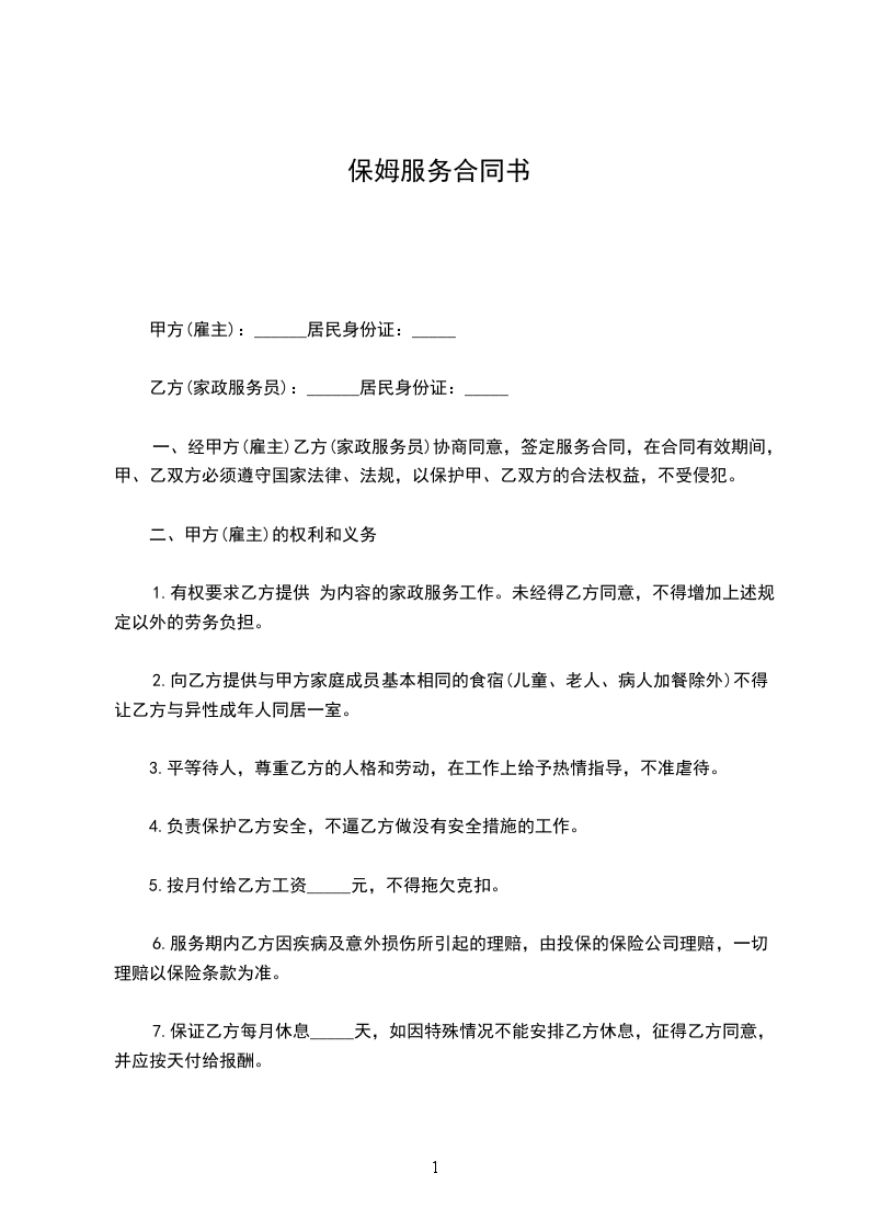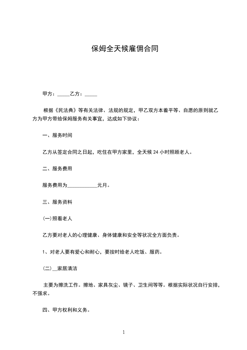 根据《中华人民共和国民法典》等有关法律、法规的规定,甲乙双方本着平等、自愿的原则就乙方为甲方提供保姆服务有关事宜,达成如下协议: