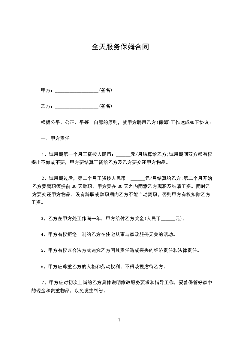 3、乙方须自觉履行上述服务项目,细心照顾小孩;