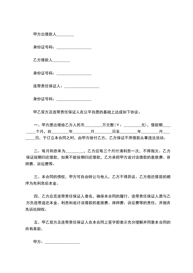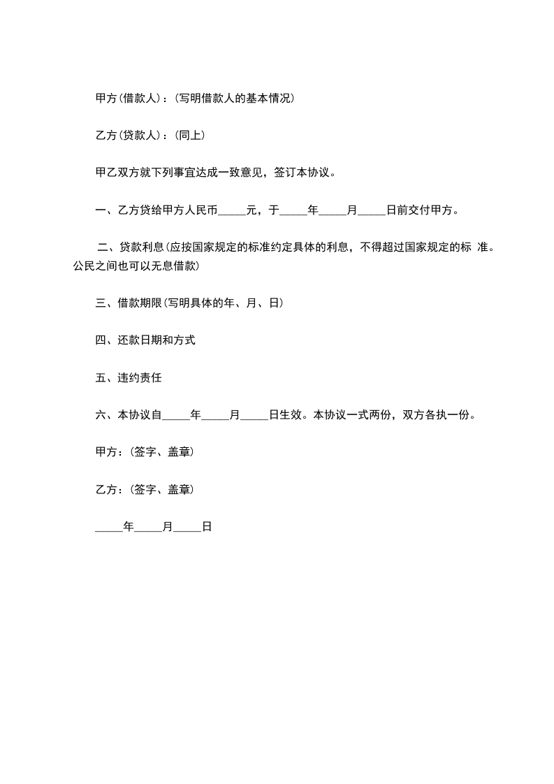 第一条 本合同规定____ 年贷款额为人民币(大写)____ 万元,用于____ 。