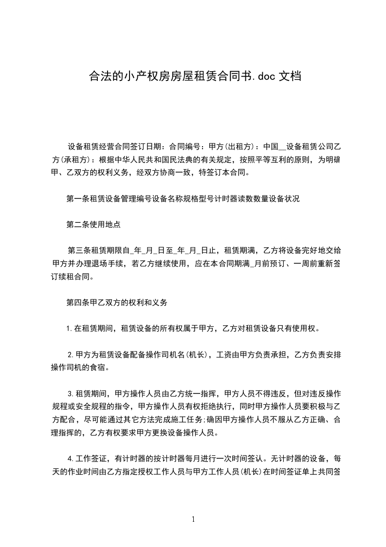 2.乙方应自收货时起24小时内在交货地点检查验收租赁设备,同时将签收盖章后的`租赁设备的验收单交给甲方。 设备租赁合同 合同编号:_________ 出租人:_________(以下简称甲方) 地址