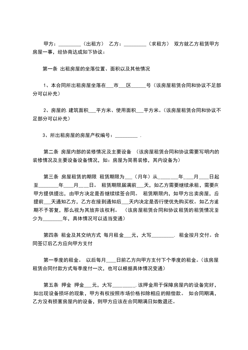 第二条租金每月人民币_________元,先付后住,不得拖欠。