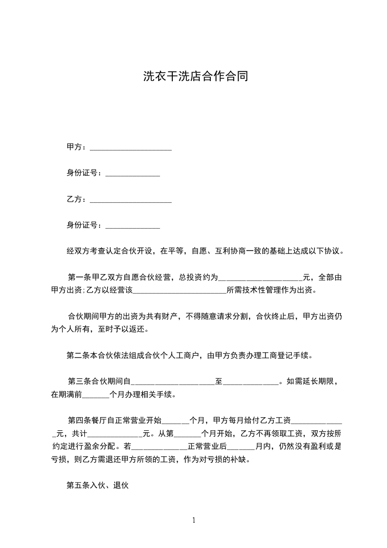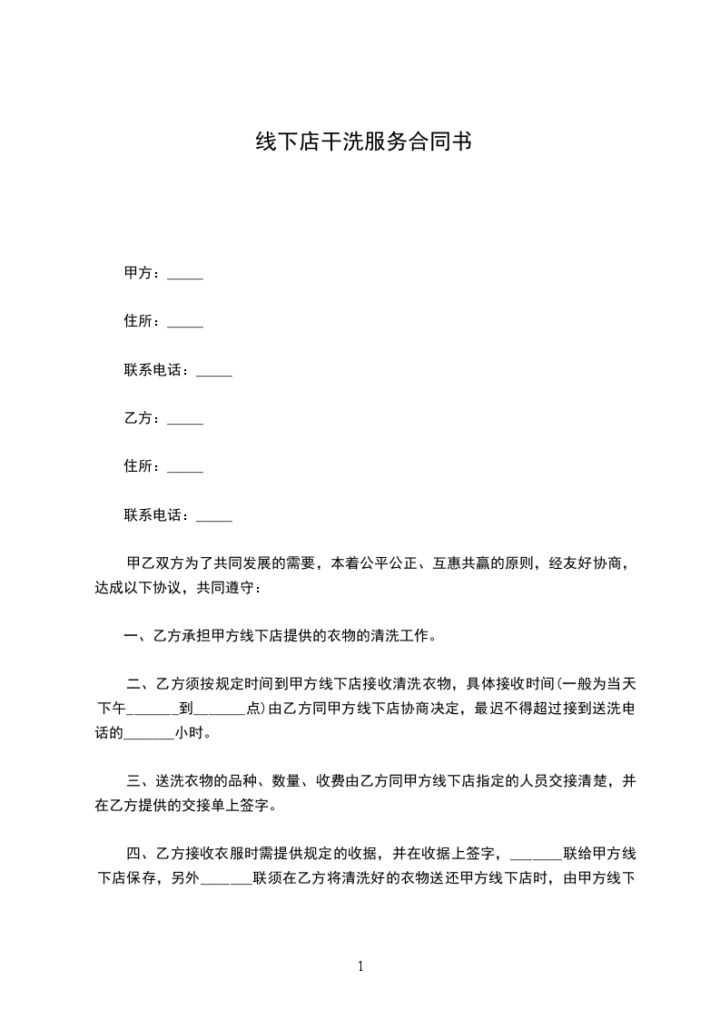 4、如发生衣服在洗涤期间,有损坏或者丢失的情况,乙方需承担全部的赔偿责任。