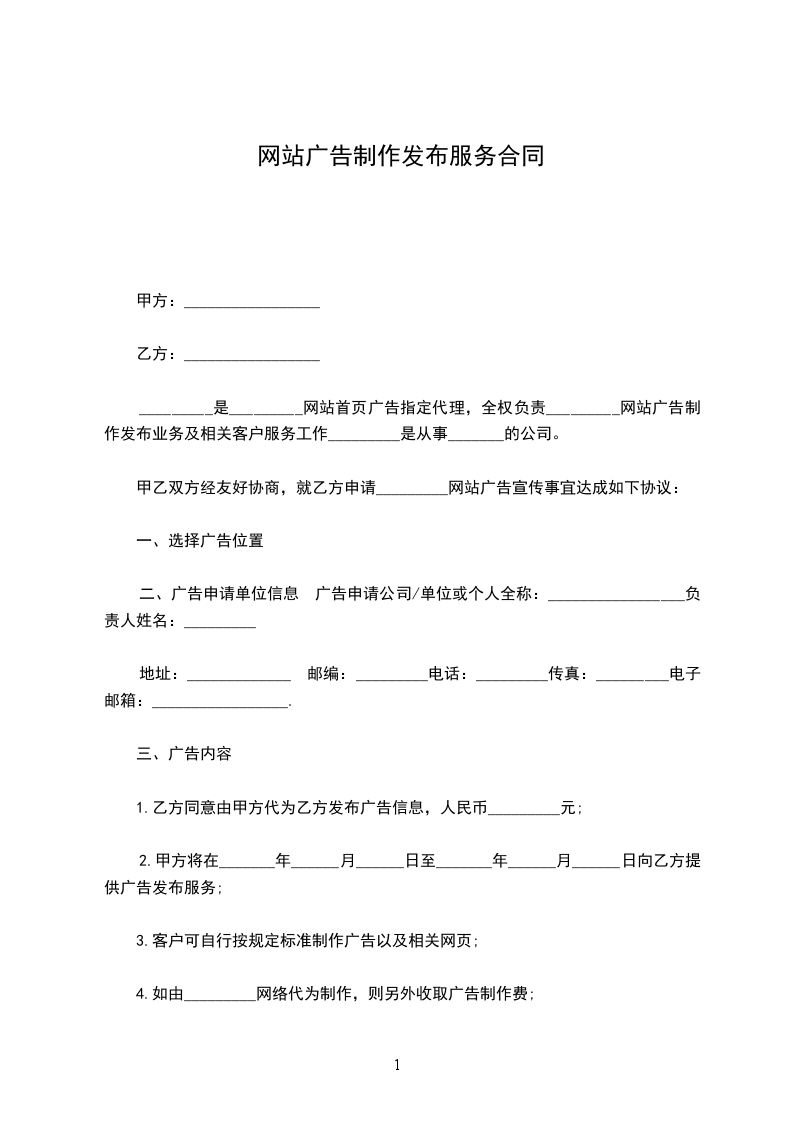 依据《中华人民共和国广告法》之有关规定。经甲、乙双方友好协商,甲方委托乙方发布网络广告,达成如下合同条款: