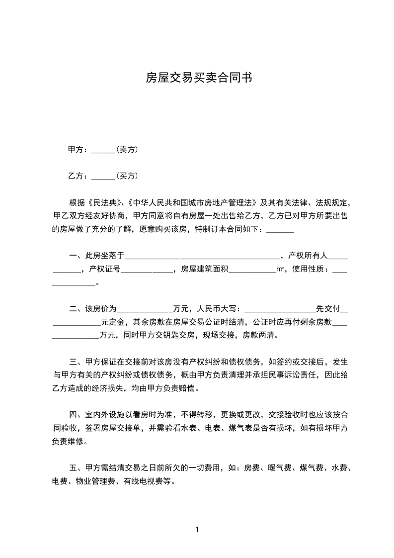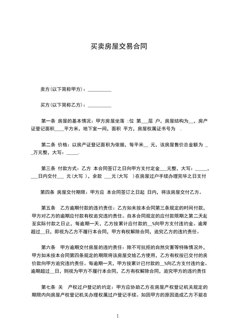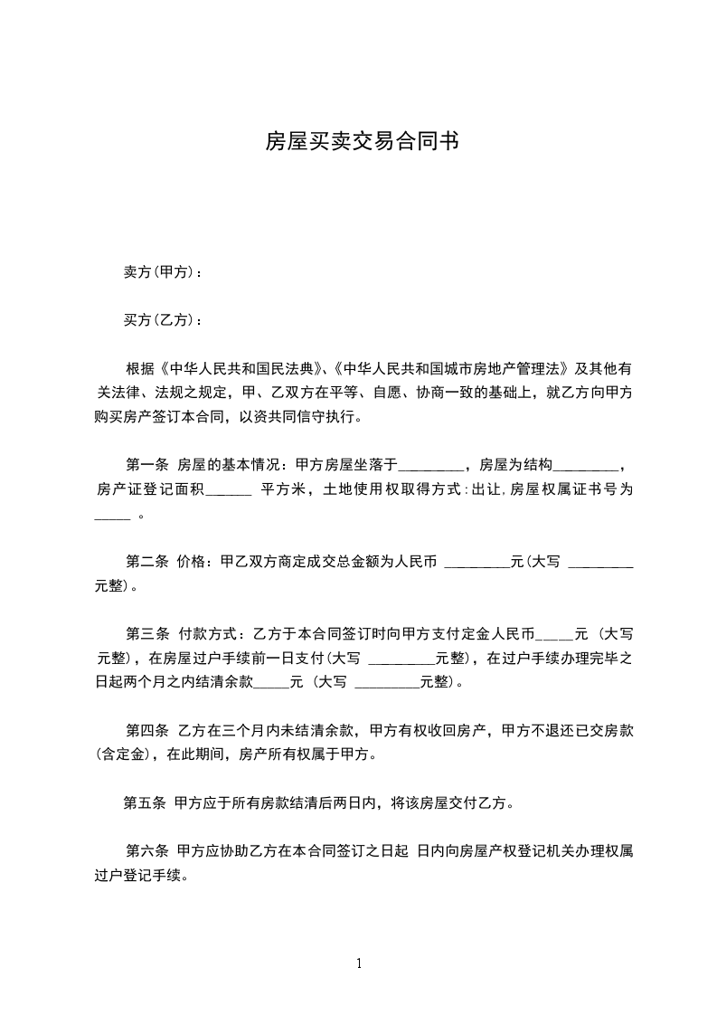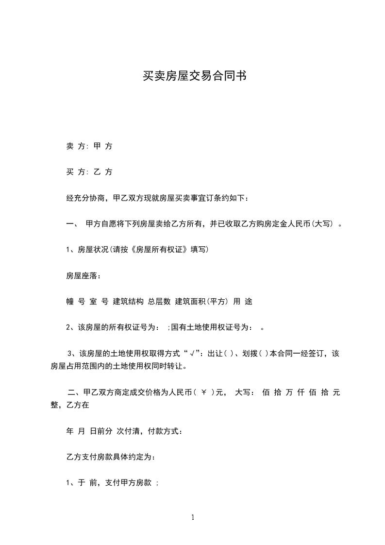 甲、乙双方就房屋买卖事项,经协商一致,达成以下合同条款:_______