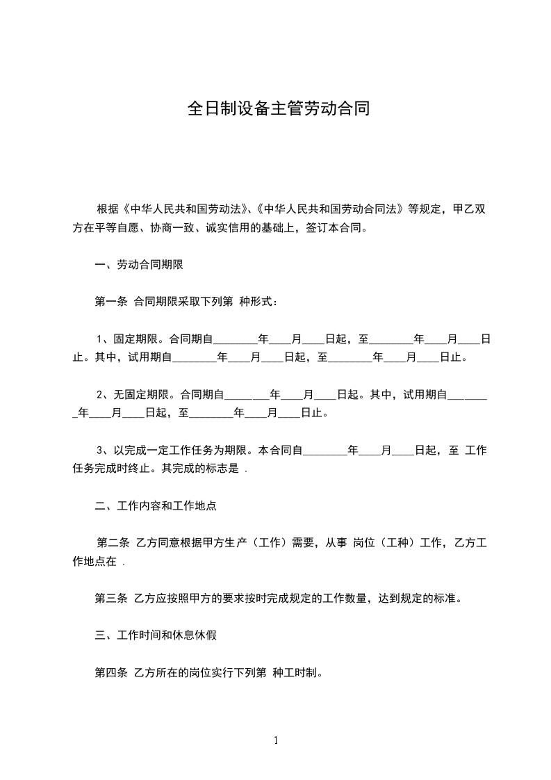 1、固定期限。合同期自________年____月____日起,至________年____月____日止。其中,试用期自________年____月____日起,至________年____月____日止。