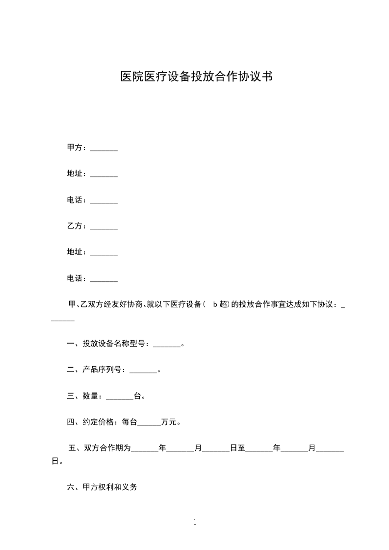 甲、乙双方经友好协商、就以下医疗设备(b超)的投放合作事宜达成如下协议:_______