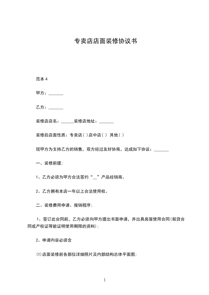 5、(1)乙方报销时须及时提供本店装修后详细照片,否则甲方有权不予承担任何费用。
