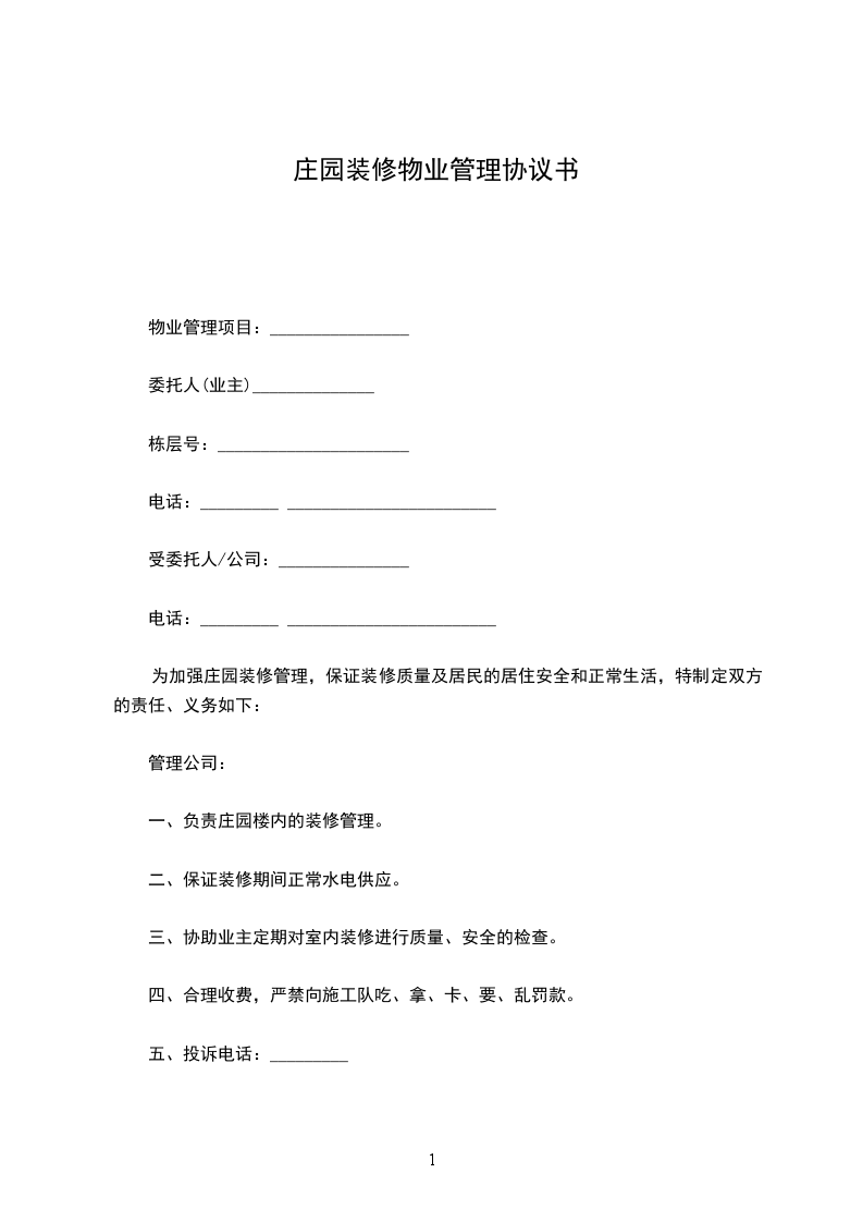 为加强庄园装修管理,保证装修质量及居民的居住安全和正常生活,特制定双方的责任、义务如下:_______
