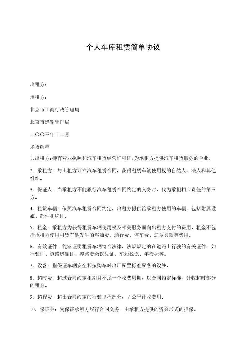 北京市汽车租赁合同条款