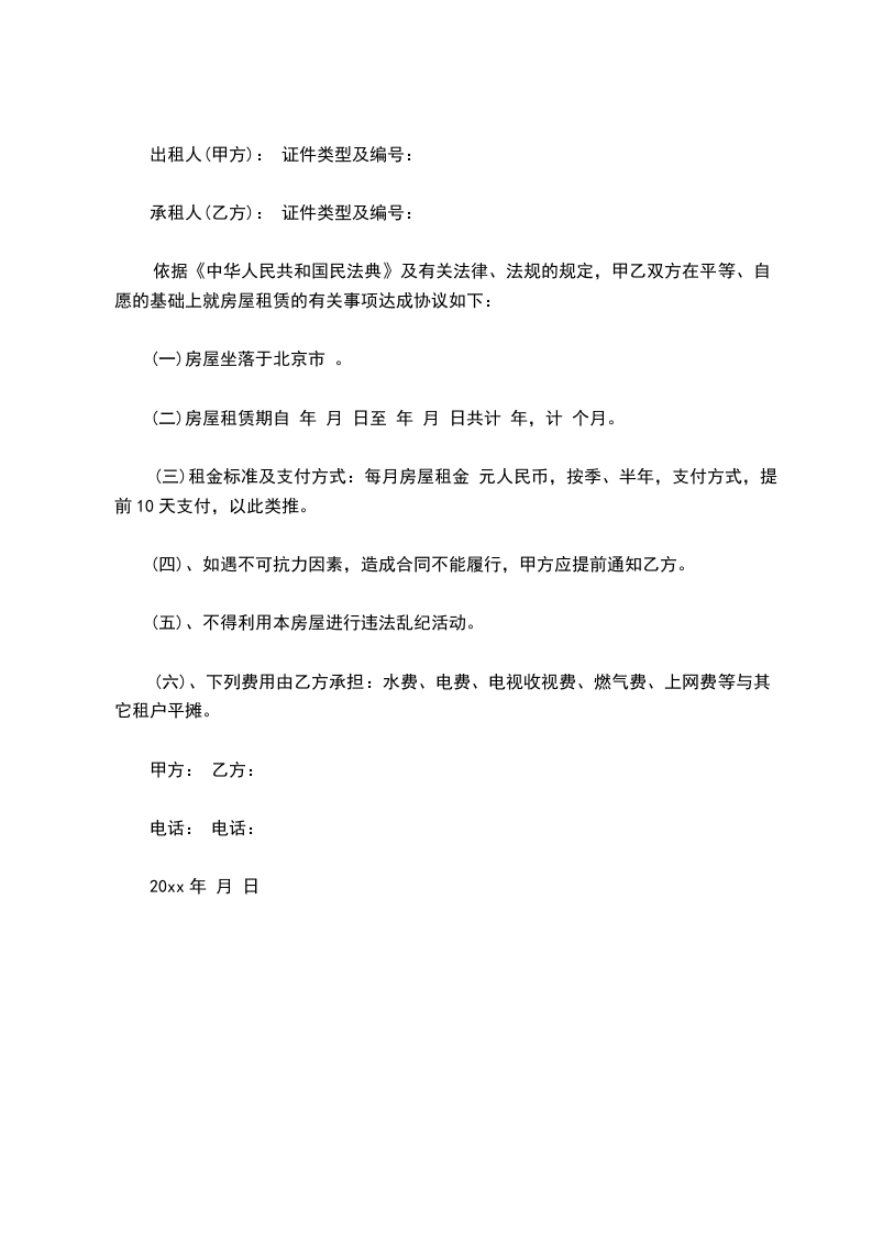 第十三条:房屋产权证复印件、甲乙方双方身份证的复印件为本合同附件。附随合同之后。 出租方:承租方: 电话:电话
