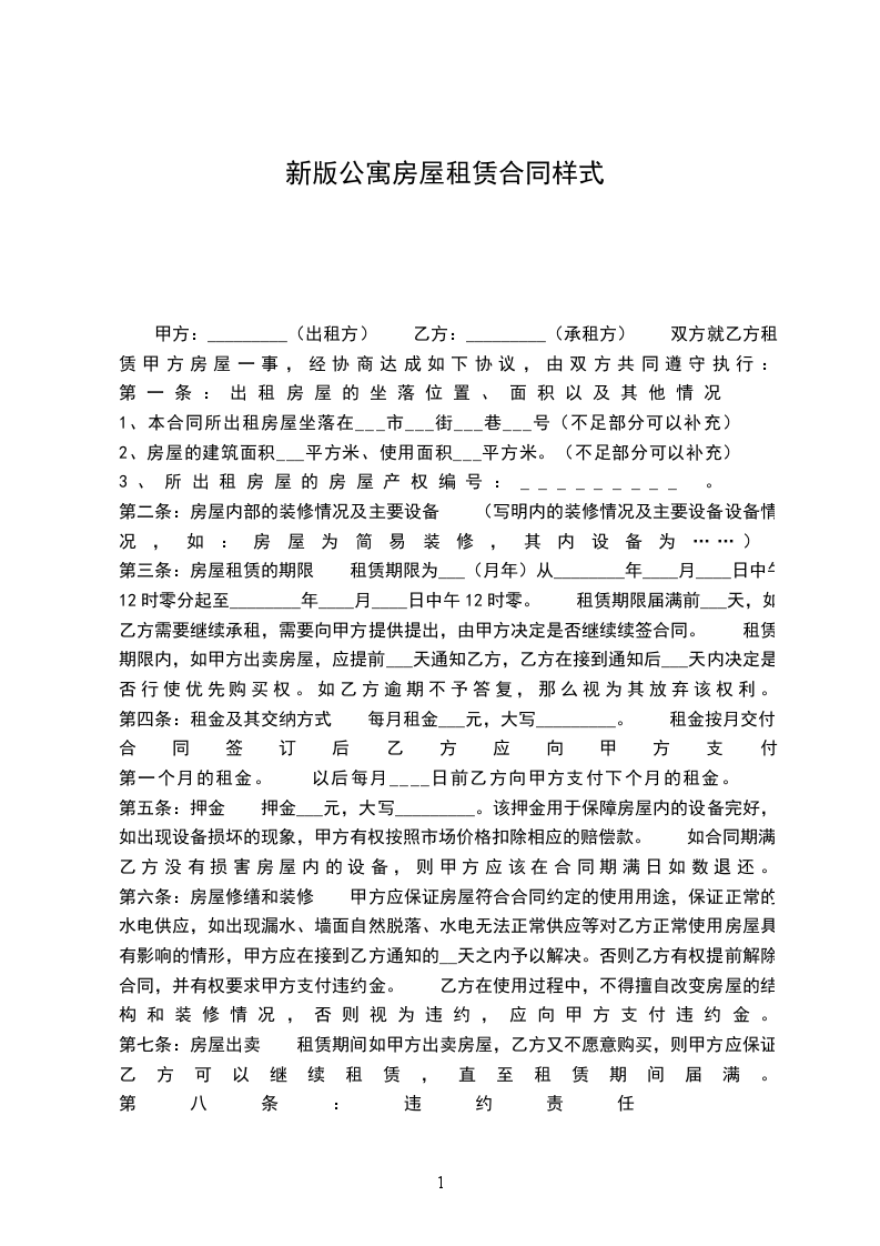 甲方:_________(出租方) 乙方:_________(承租方) 双方就乙方租赁甲方房屋一事,经协商达成如下协议,由双方共同遵守执行: