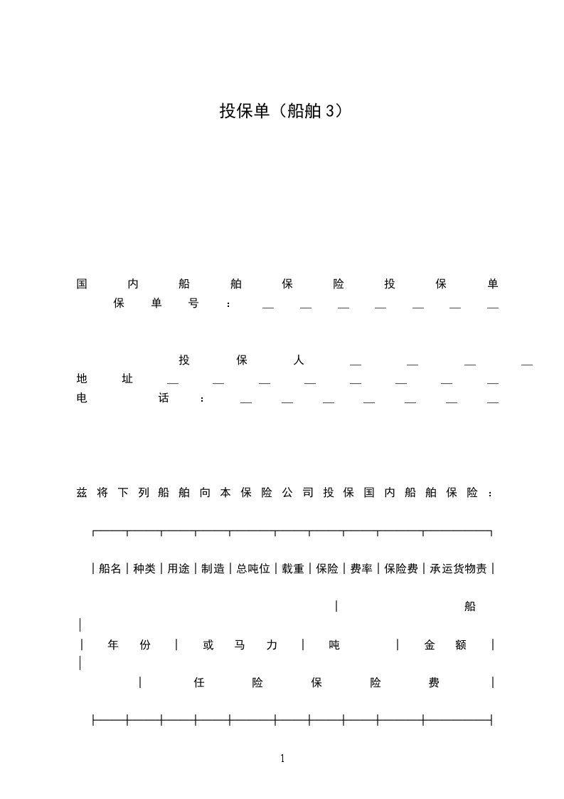 国内船舶保险投保单
