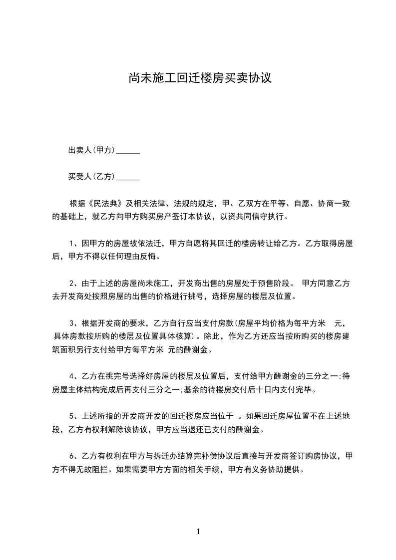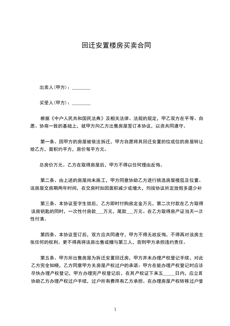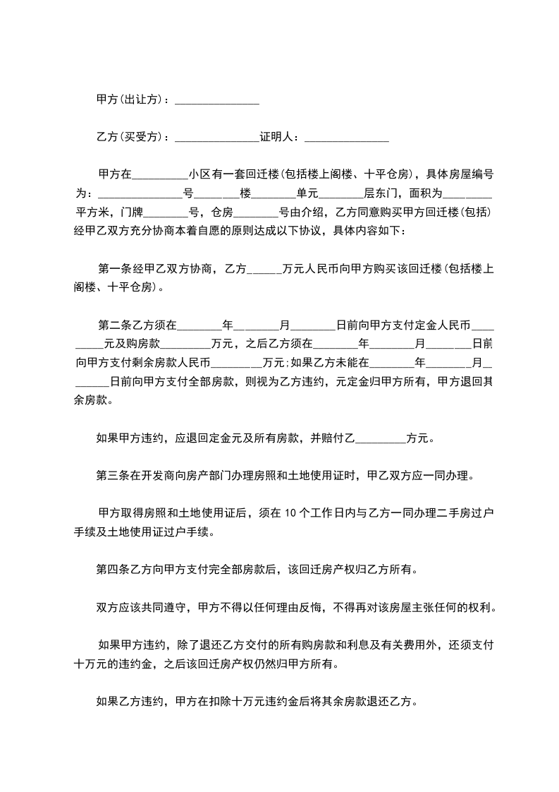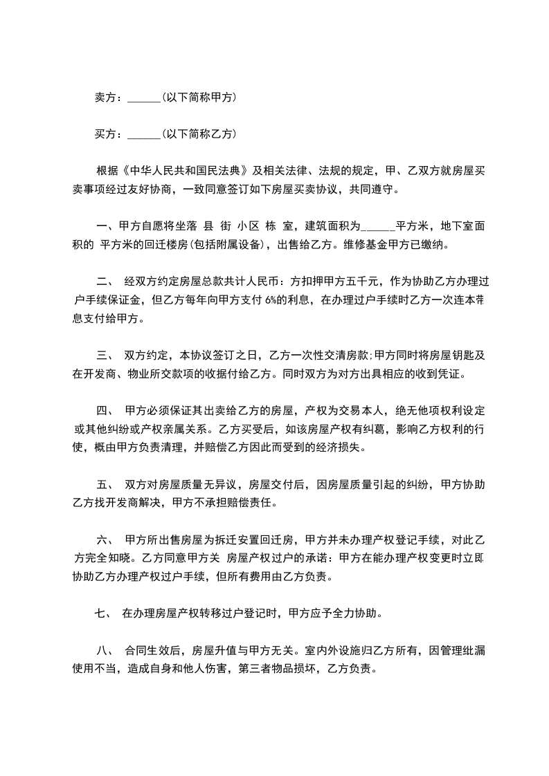 六、甲方所出售房屋为拆迁安置回迁房,甲方并未办理产权登记手续,对此乙方完全知晓。乙方同意甲方关于房屋产权过户的承诺:_____