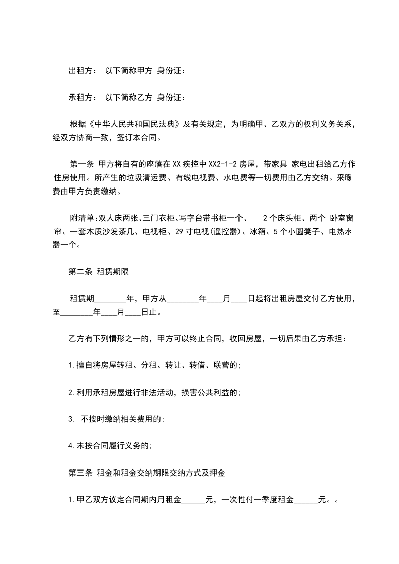 第六条所述某某办公楼全部或部分空置时间超过一个月以上的,甲方有权将空置部分收回。