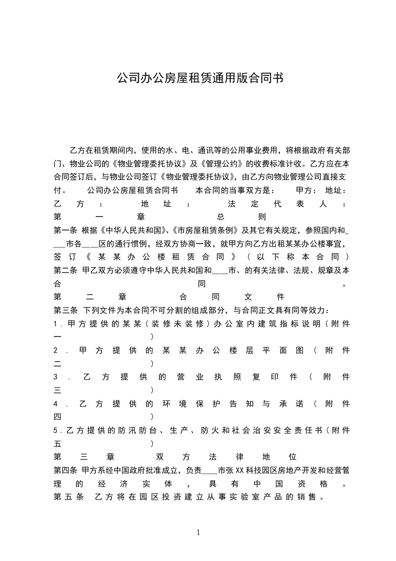 乙方在租赁期间内,使用的水、电、通讯等的公用事业费用,将根据政府有关部门、物业公司的《物业管理委托协议》及《管理公约》的收费标准计收。乙方应在本合同签订后,与物业公司签订《物业管理委托协议》,由乙方向物业管理公司直接支付。 公司办公房屋租赁合同书 本合同的当事双方是: 甲方: 地址: 乙方: 地址: 法定代表人: