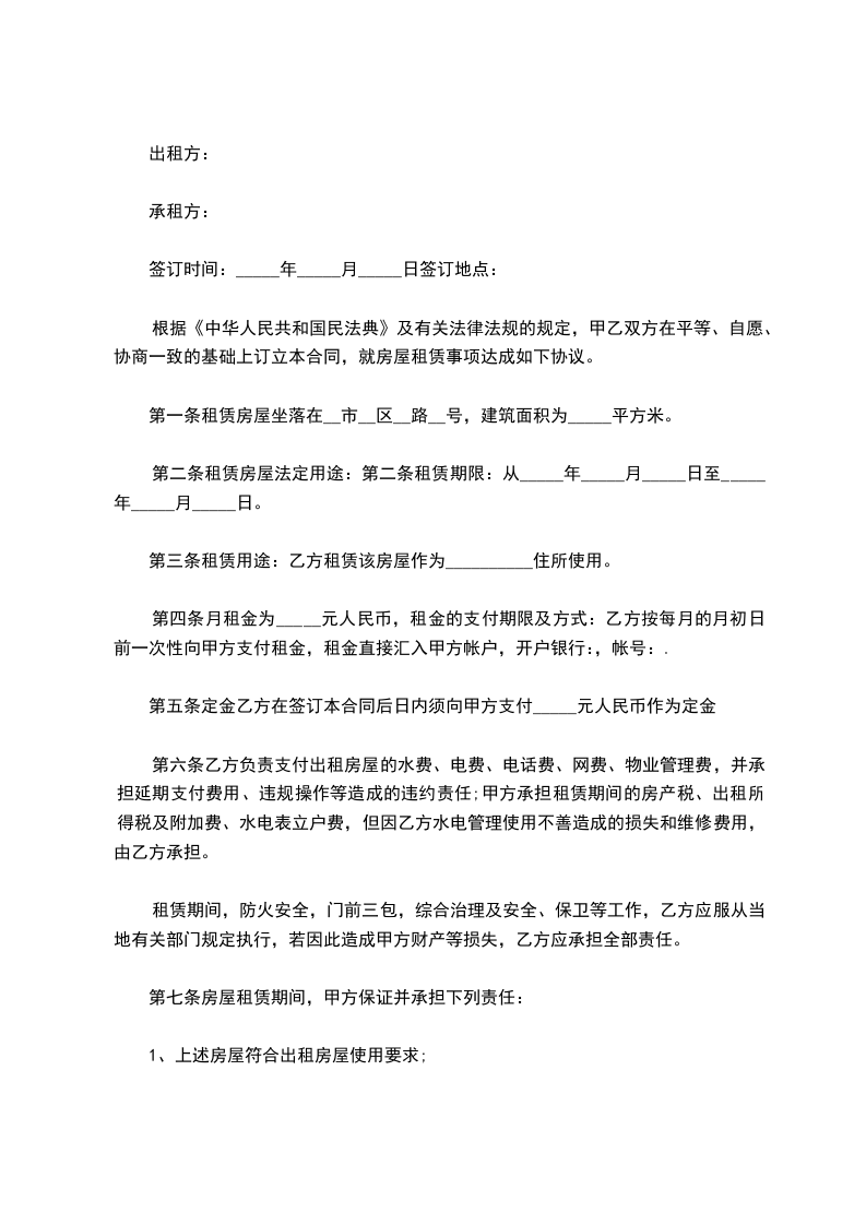 第七条 乙方向甲方租赁本合同