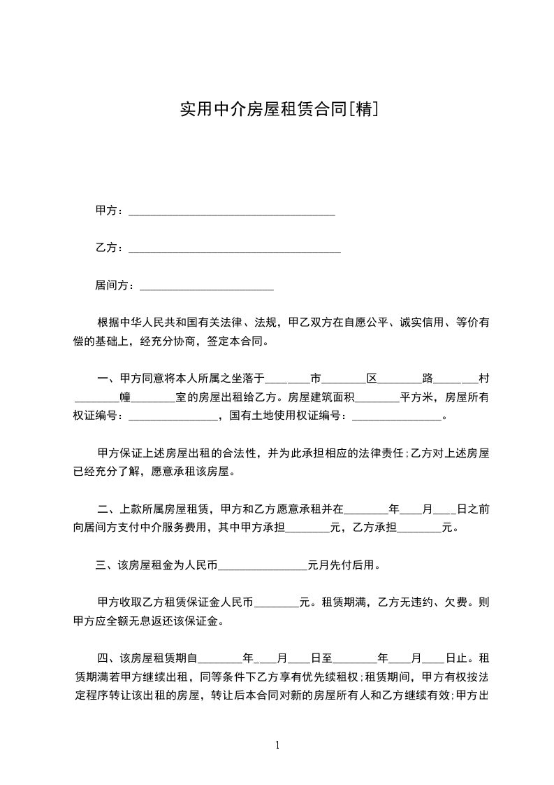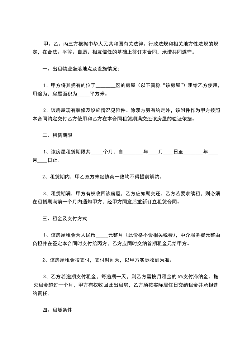 1、该房屋租金为人民币_____元整月(此价格不含相关税费),中介服务费元整由负担并在签定本合同时支付给丙方,乙方应同时交纳首期租金元给甲方。