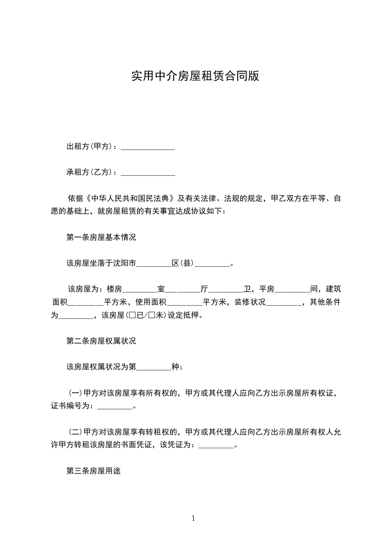 1、甲方将其拥有的位于________区的房屋(以下简称“该房屋”)租给乙方使用,用途为,房屋面积为_____平方米。