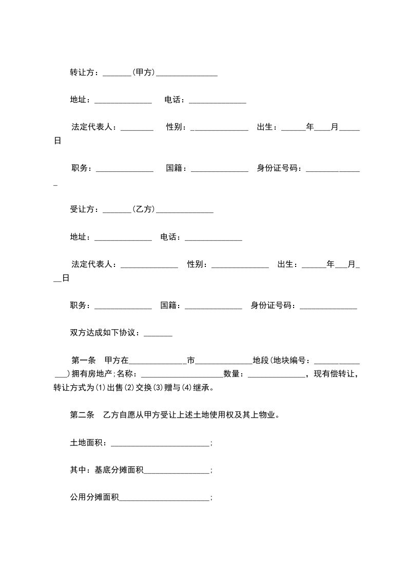 一、乙方拟受让的房地产占地面积共计__________亩,四至见附图。