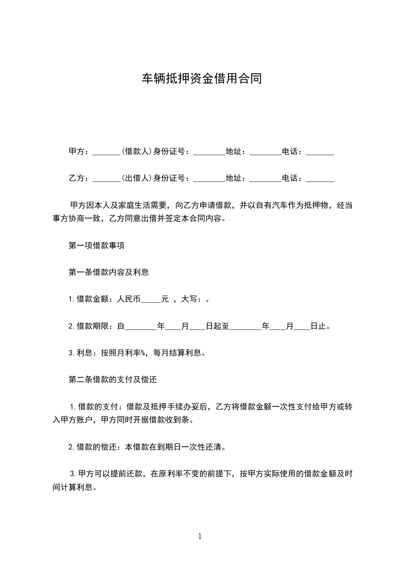 甲方因本人及家庭生活需要,向乙方申请借款,并以自有汽车作为抵押物,经当事方协商一致,乙方同意出借并签定本合同内容。