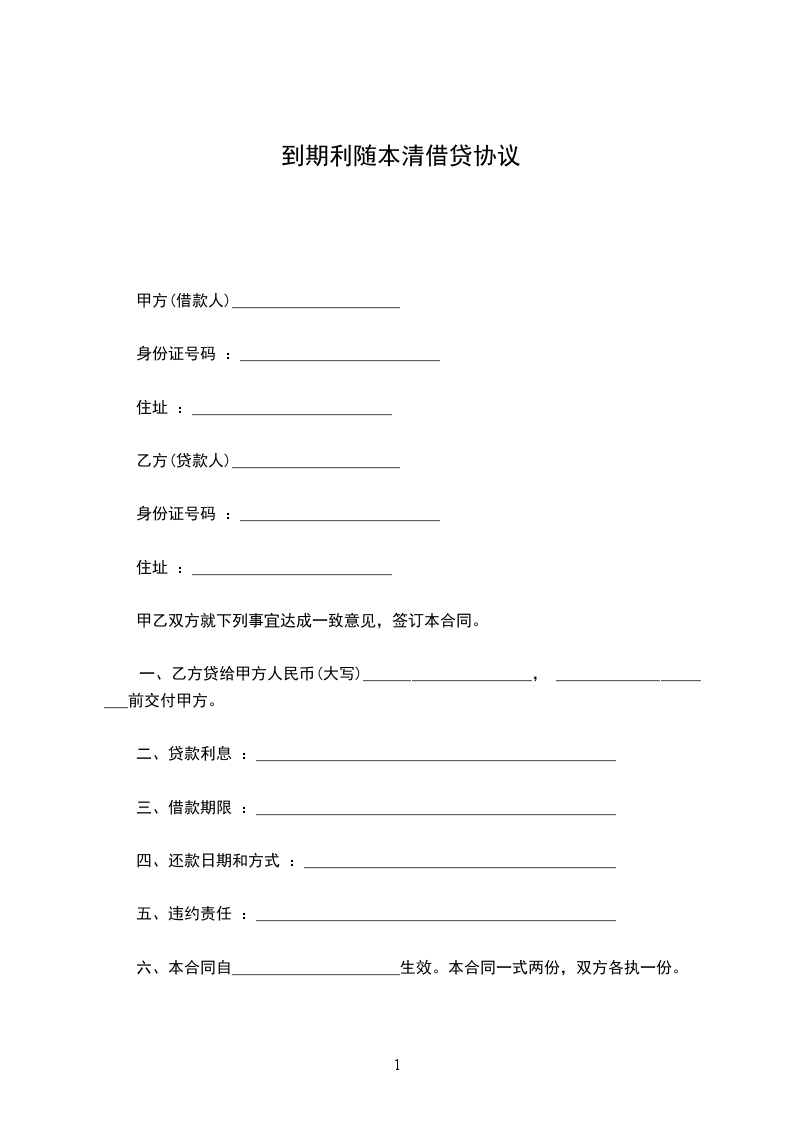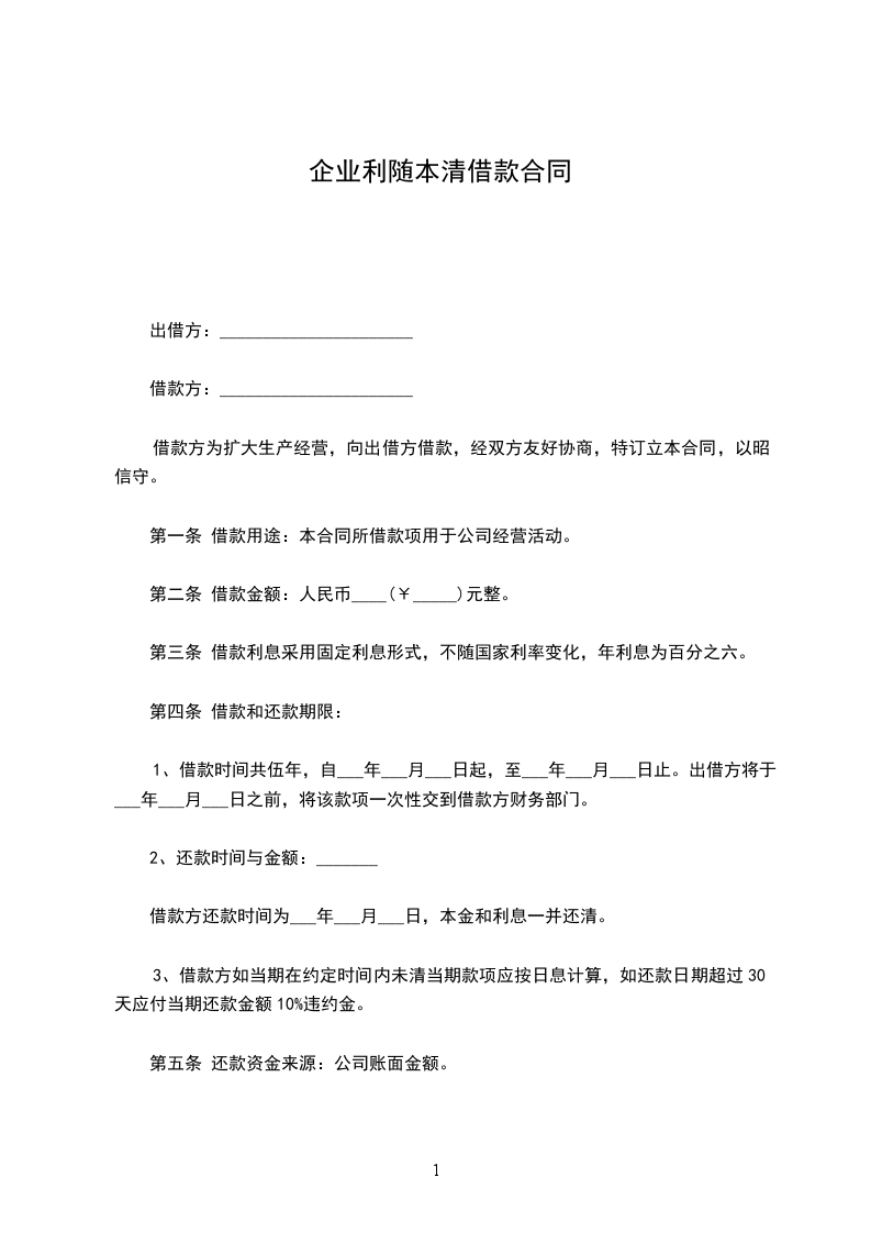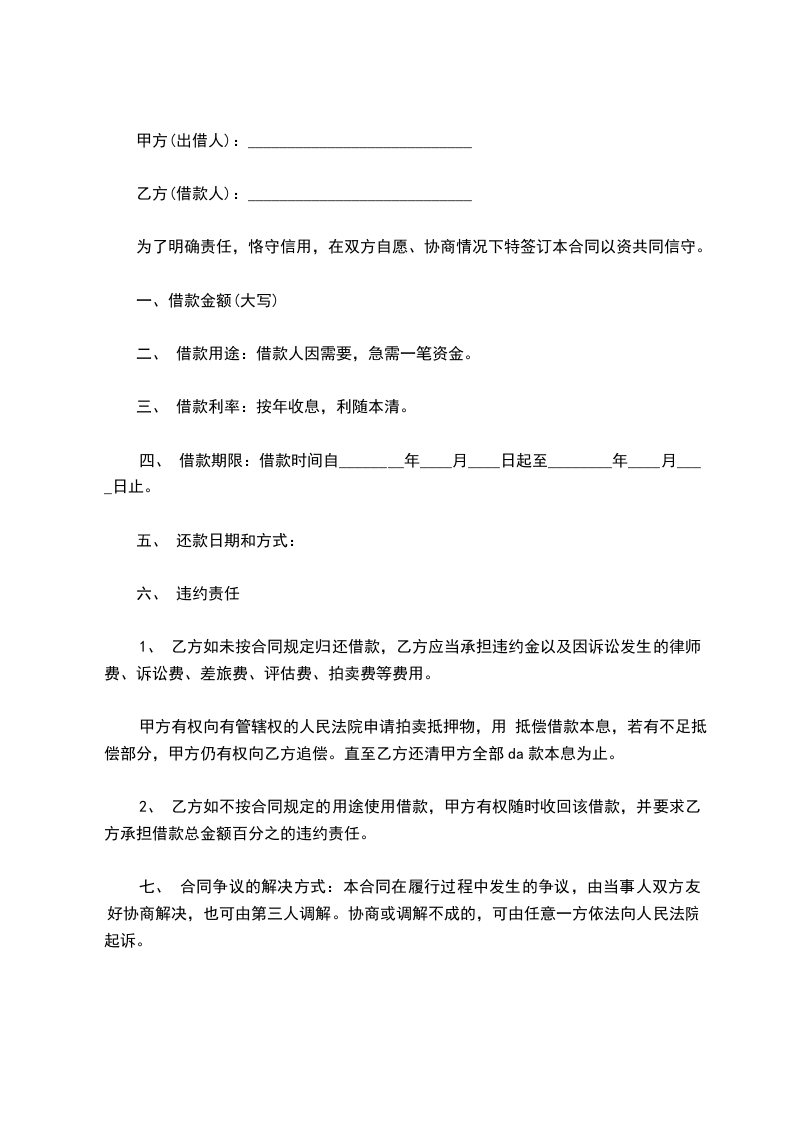 第一条:借款金额为人民币(大写)元整;(小写)元。