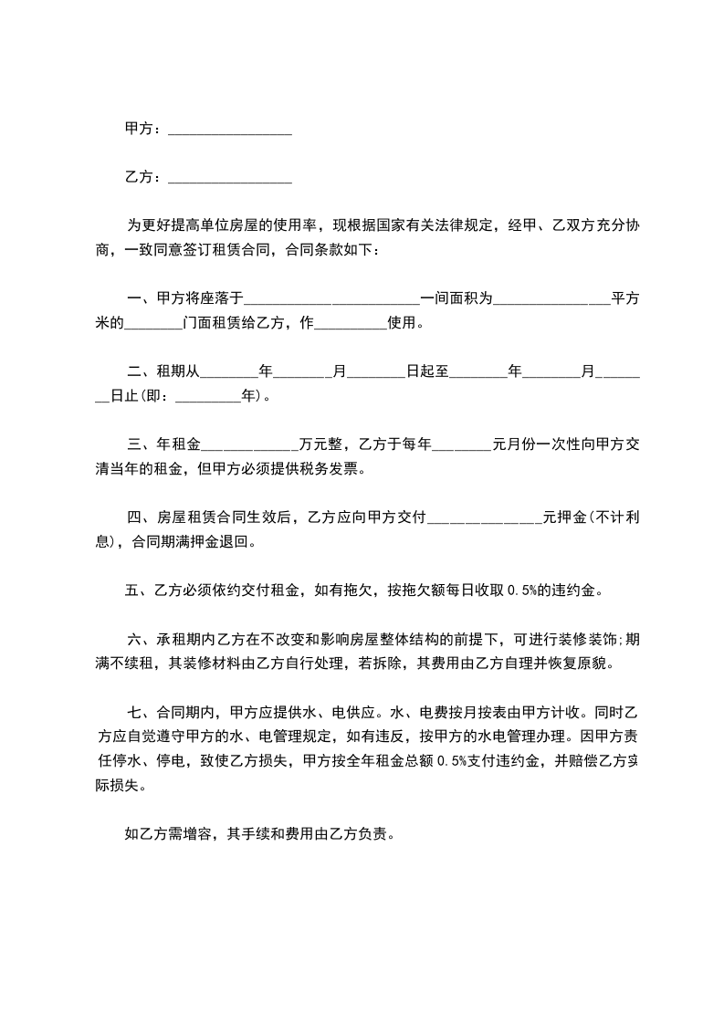 (三)商号现承租坐落____市__路__号的租赁权,由甲方让与乙方,并由甲方负责出租人与乙方办理续租________年,与乙方另行换立租约,如出租人不允许续租或要求增加租金或提出其他条件,致乙方受害时,甲方应负赔偿责任。