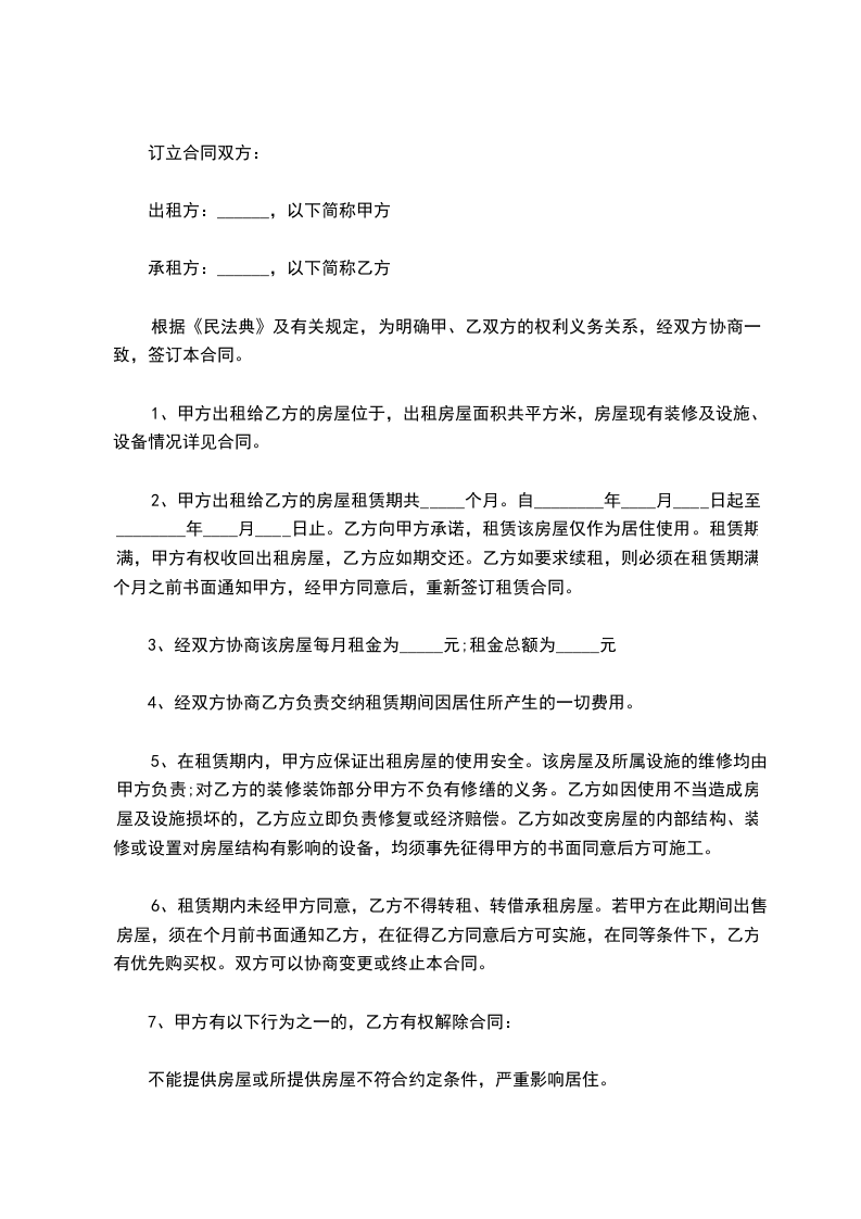 甲方:_________ 乙方:_________ 乙方承租甲方管理的上列房屋作为_________使用,双方议定遵守事项如下: 房屋座落:_________区_________楼_________单元_________号 房屋使用面积:_________平方米