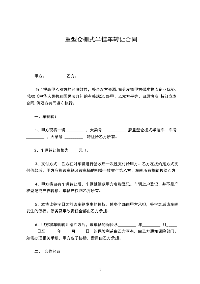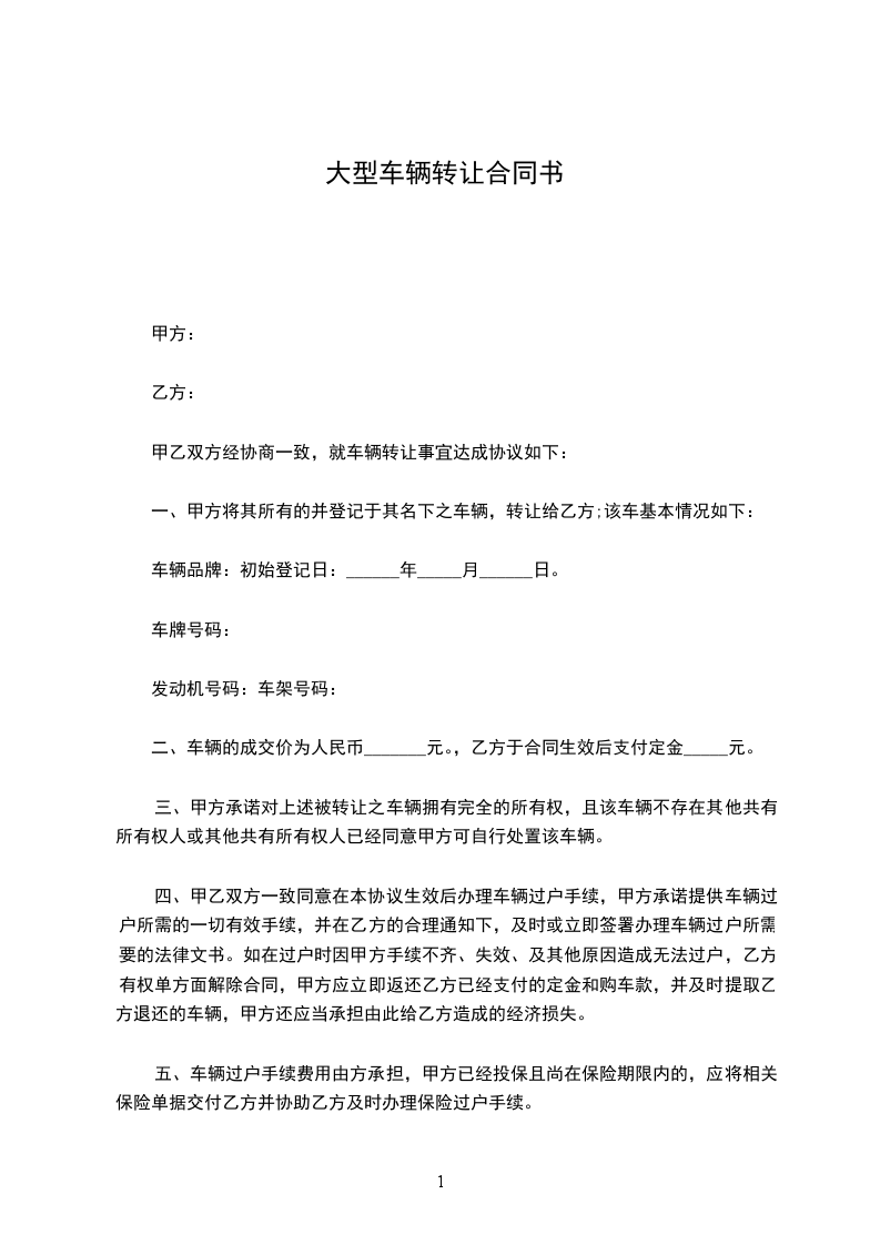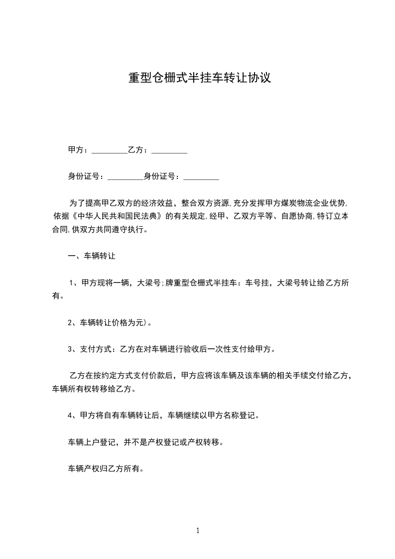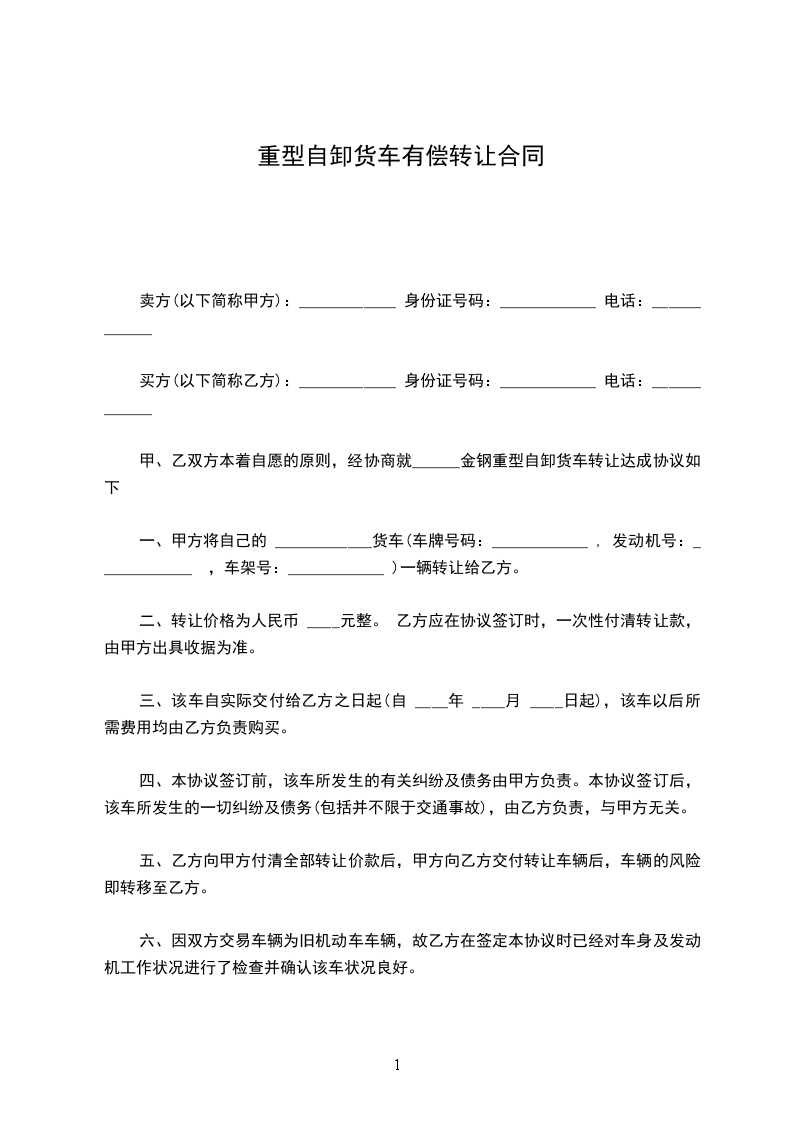 重型车辆转让合同
