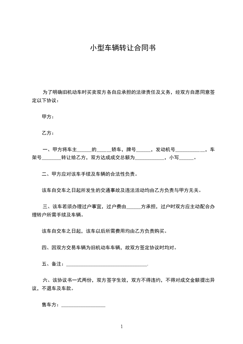五、该车过户费,由______方负责,现双方确定甲方在______年______月______日______时前提供,该车一切过户手续,并协助乙方过户。