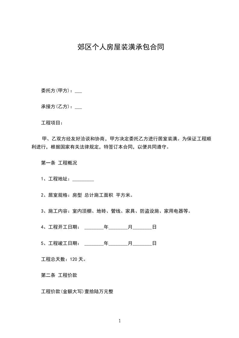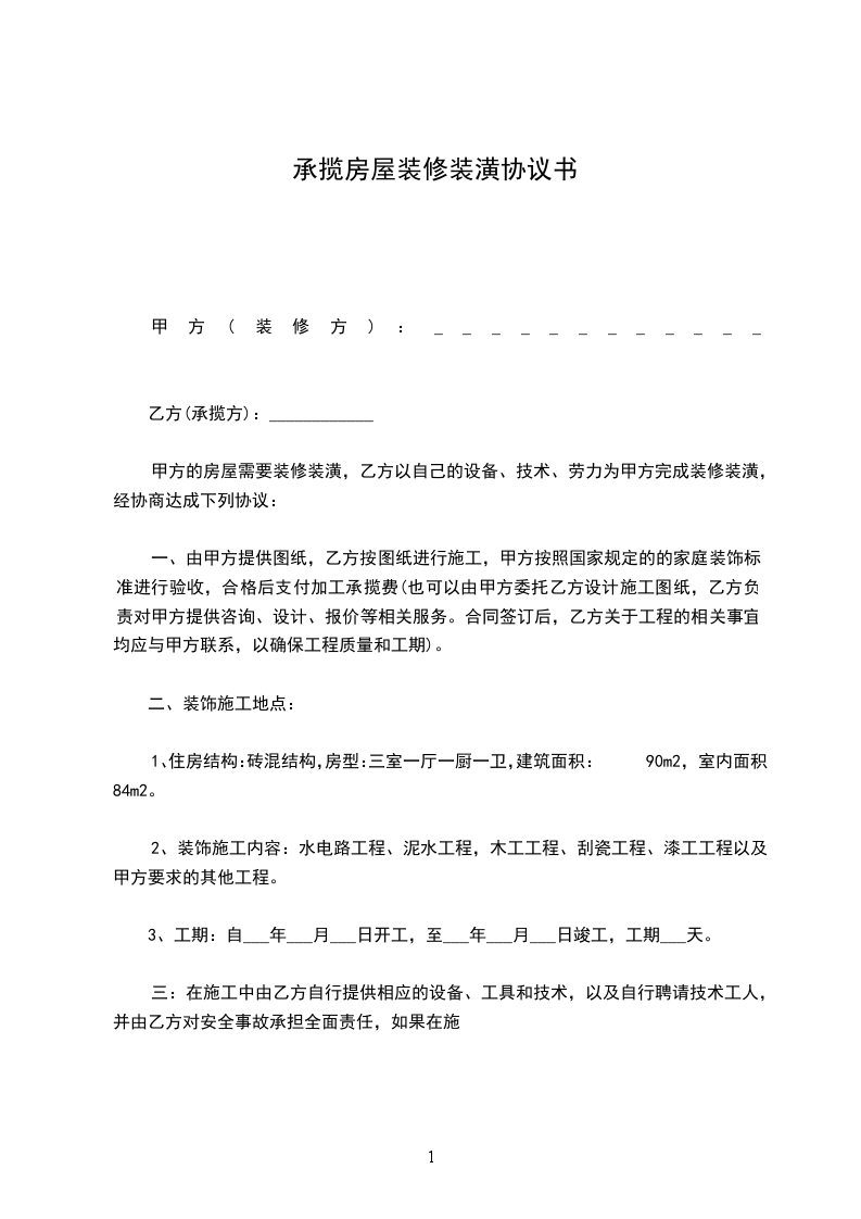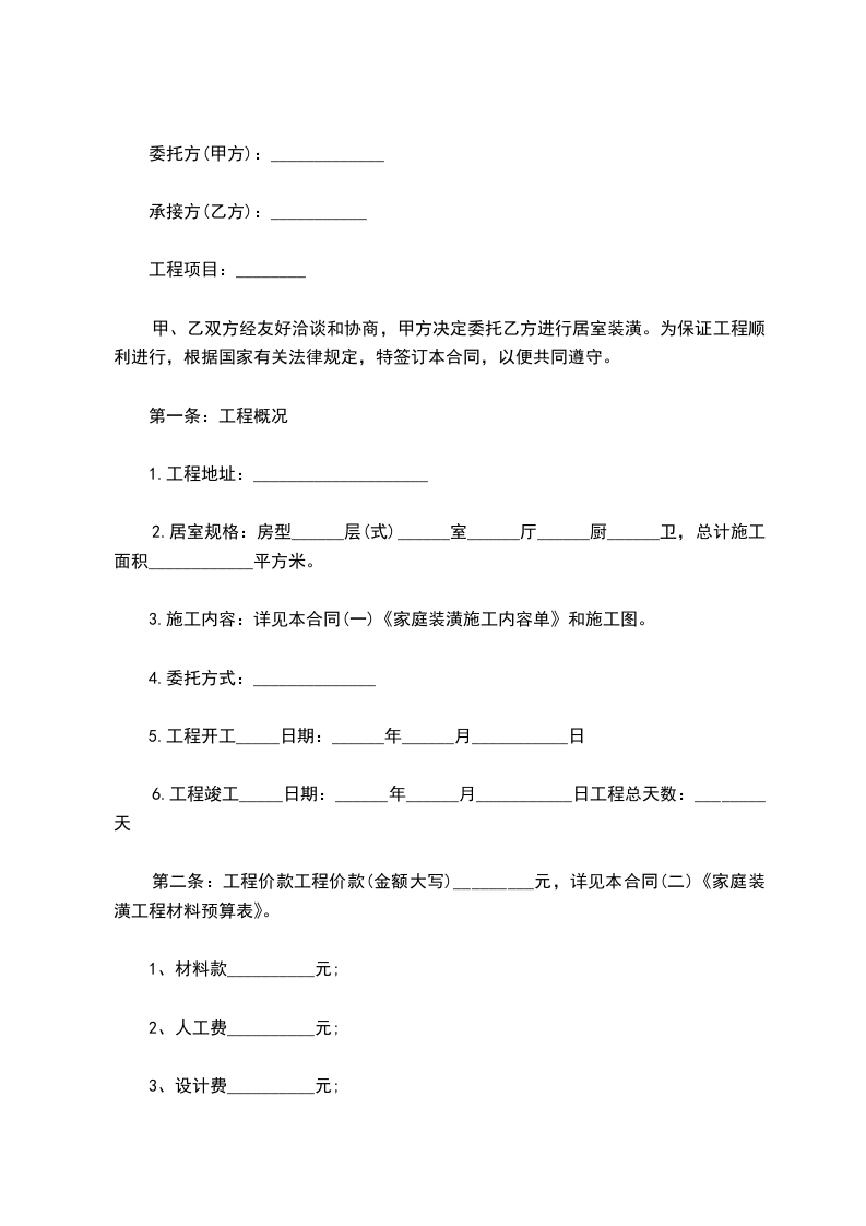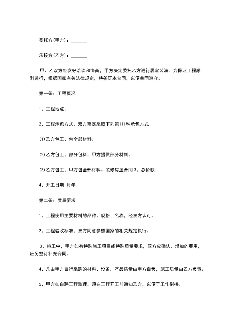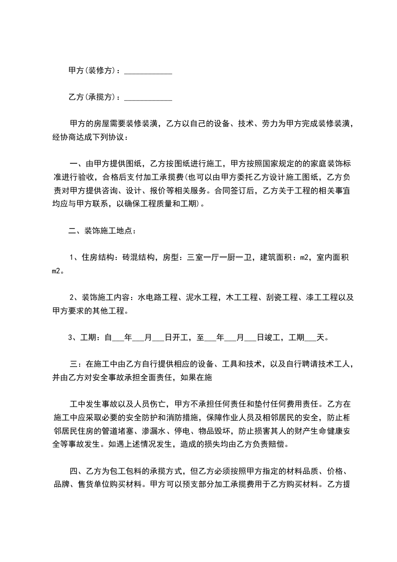 (3)乙方包工、甲方包全部材料。装修房屋合同