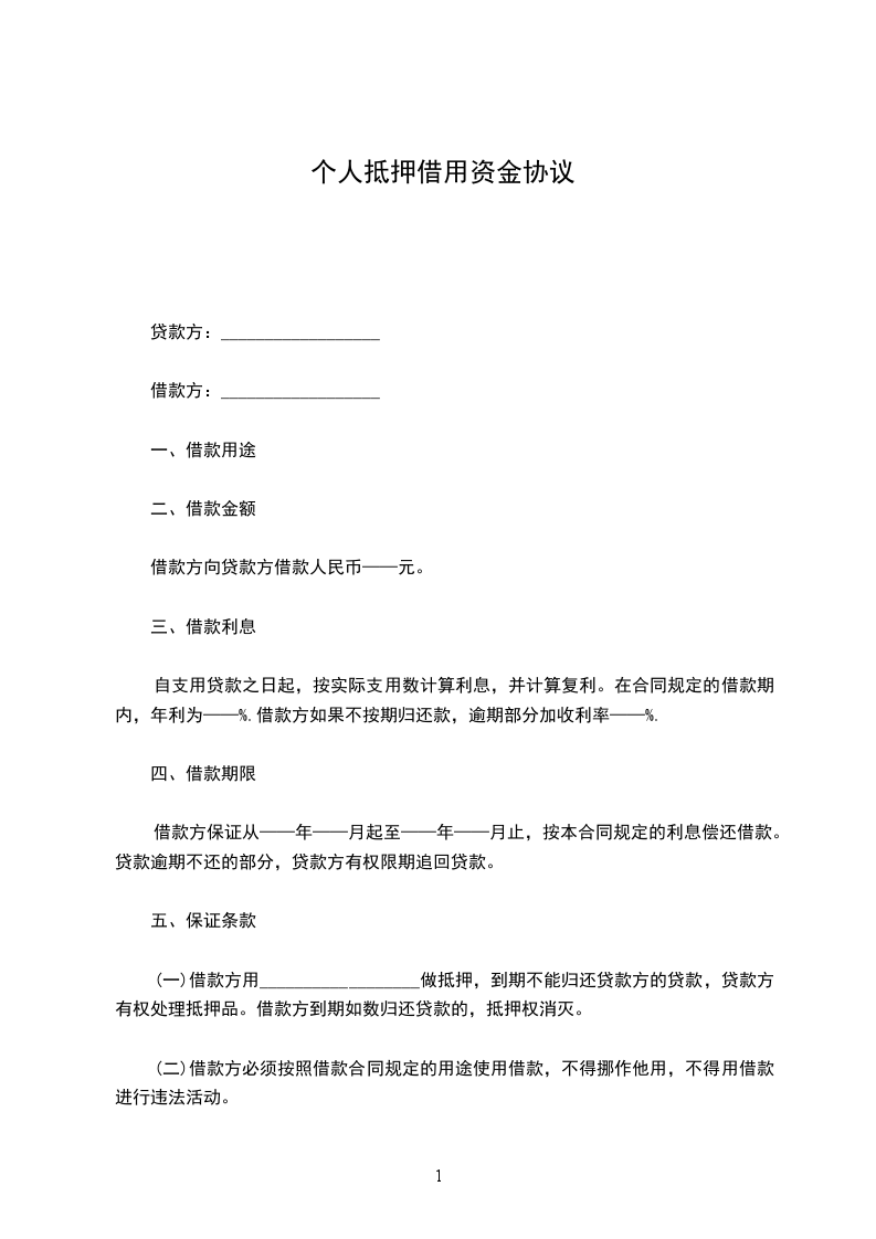 (一)借款方用__________________做抵押,到期不能归还贷款方的贷款,贷款方有权处理抵押品。借款方到期如数归还贷款的,抵押权消灭。