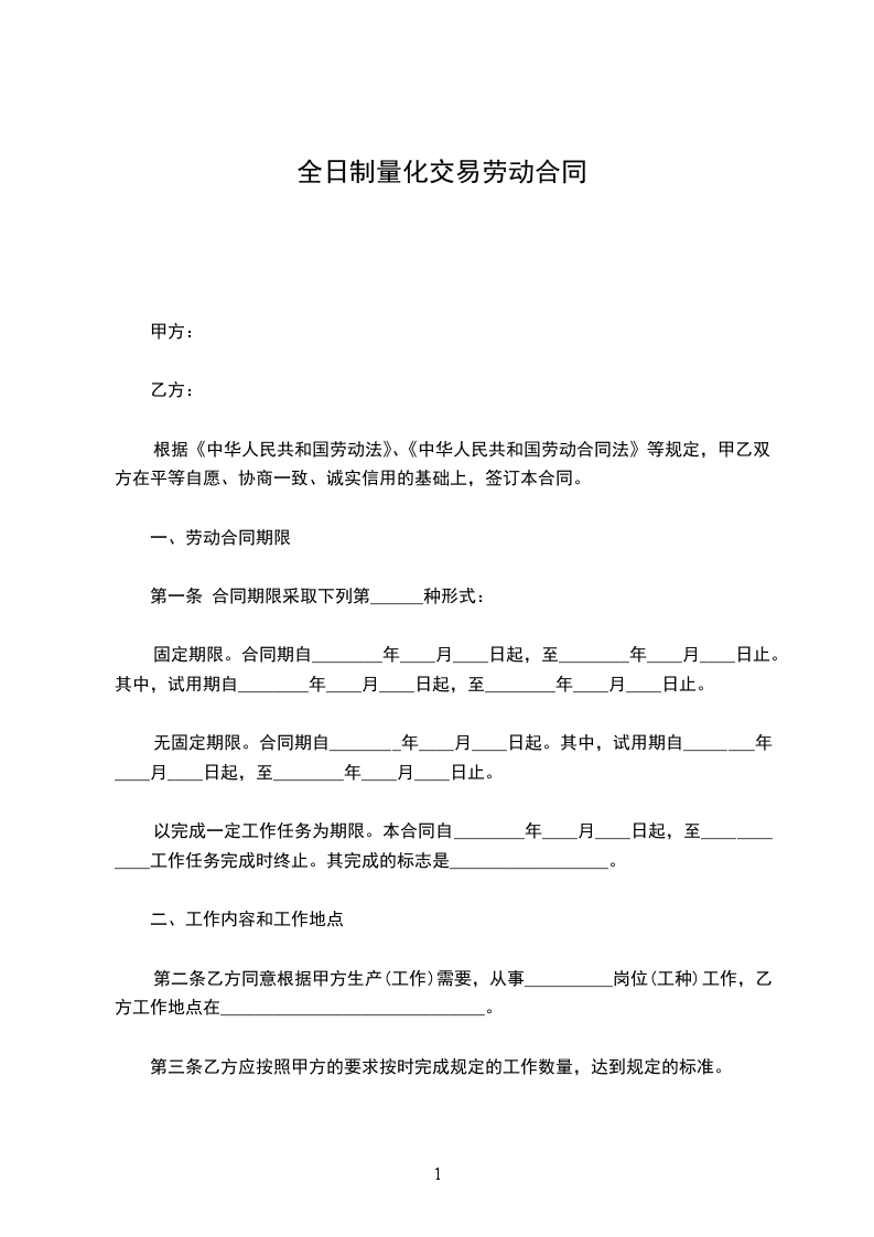 第一条 合同期限采取下列第______种形式: