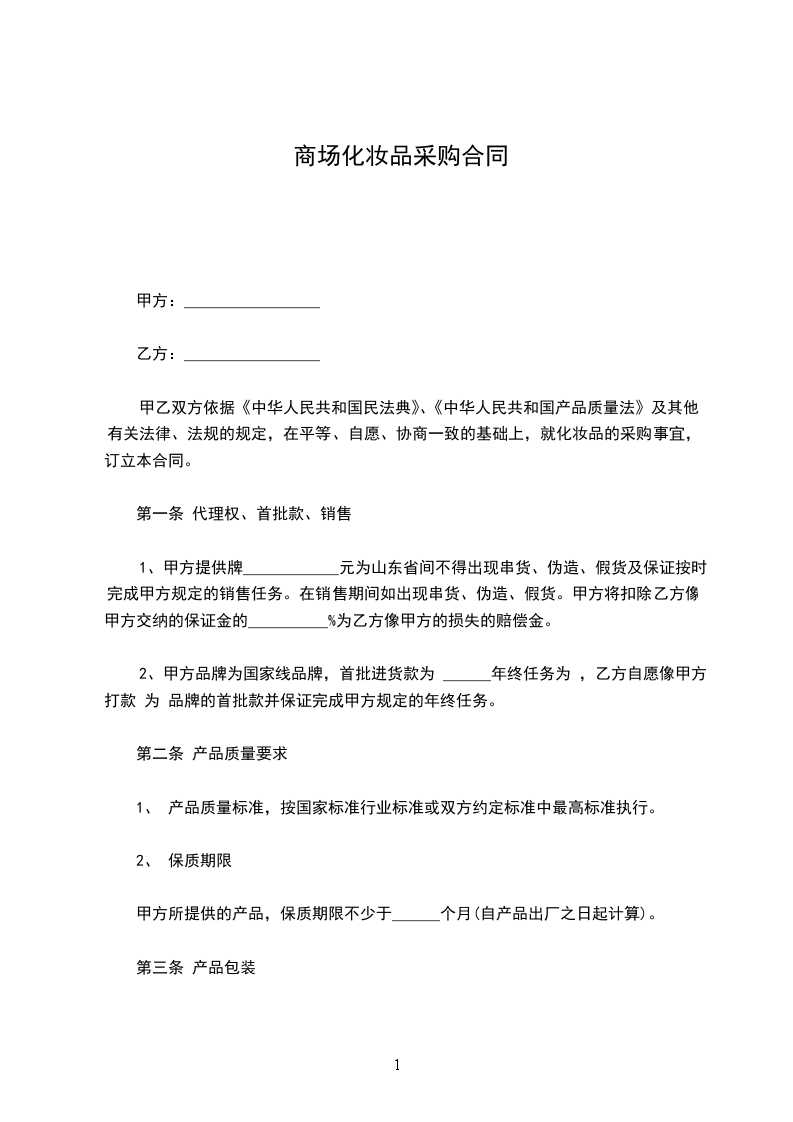甲乙双方依据《中华人民共和国民法典》、《中华人民共和国产品质量法》及其他有关法律、法规的规定,在平等、自愿、协商一致的基础上,就化妆品的采购事宜,订立本合同。