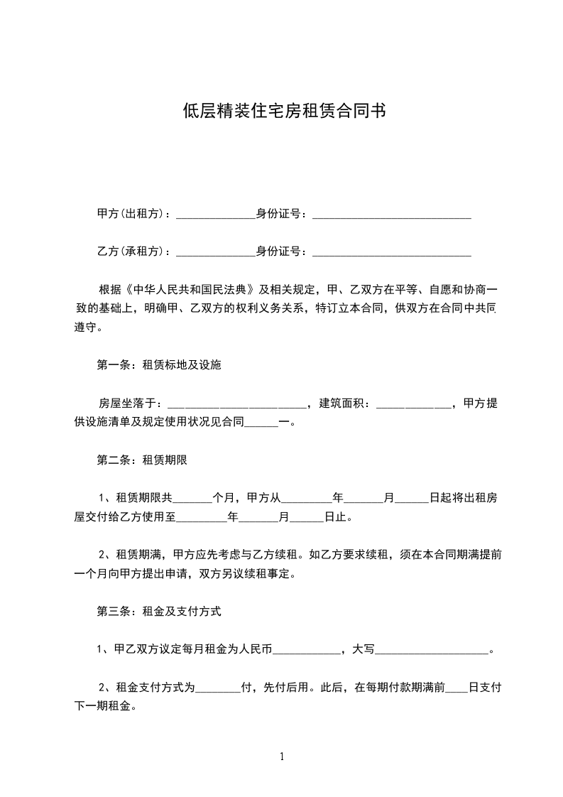 甲方(出租方):______________身份证号:____________________________