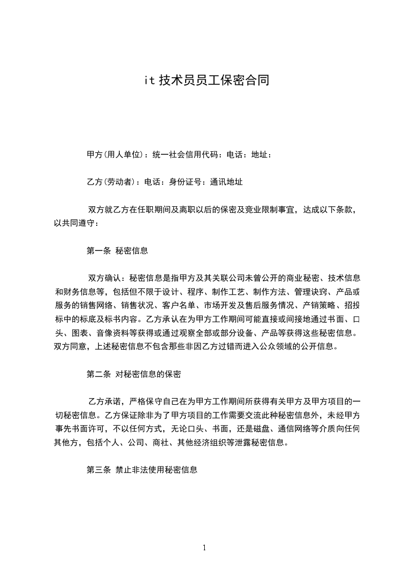三、甲方应制定相应的保密制度,对商业秘密的内容、范围、保密期限等作出规定,以便乙方遵循。