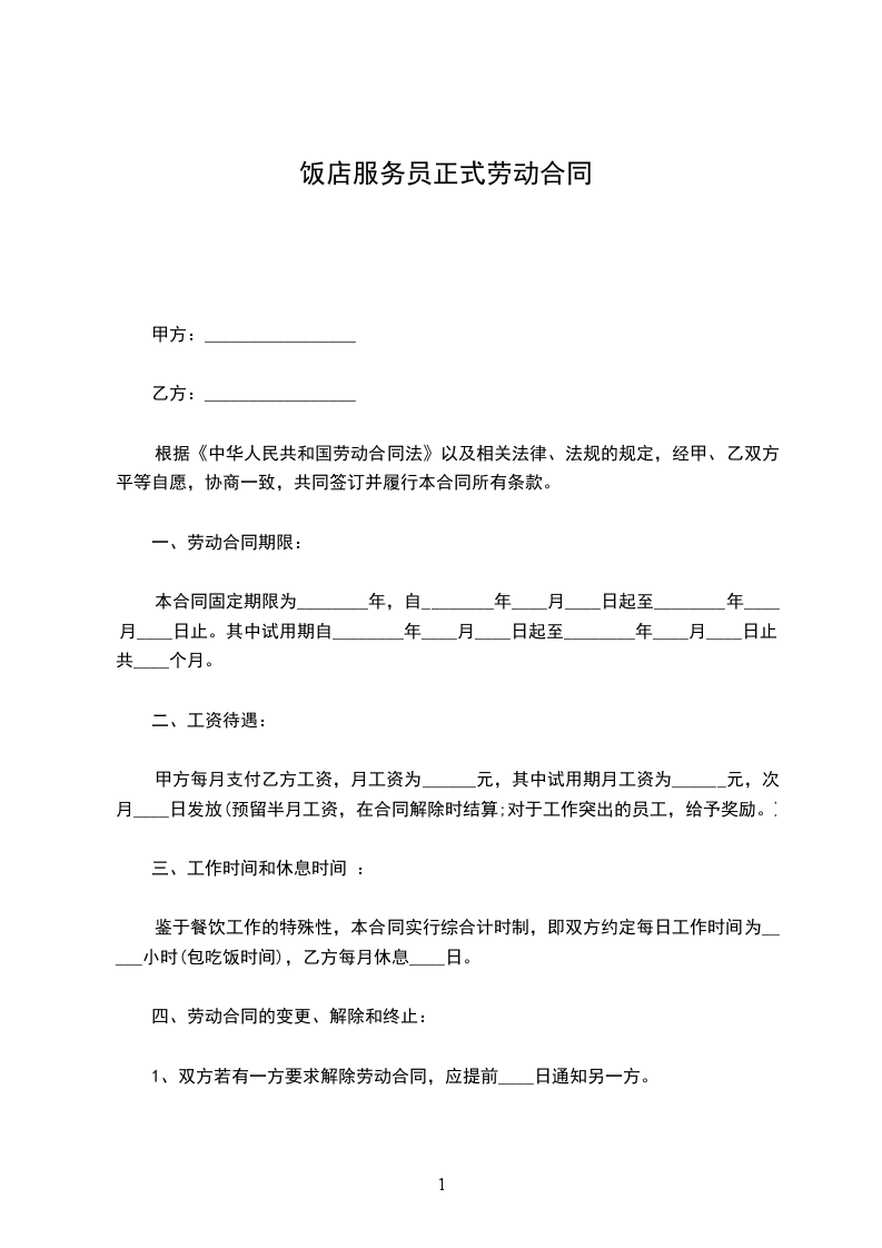 鉴于餐饮工作的特殊性,本合同实行综合计时制,即双方约定每日工作时间为_____小时(包吃饭时间),乙方每月休息____日。