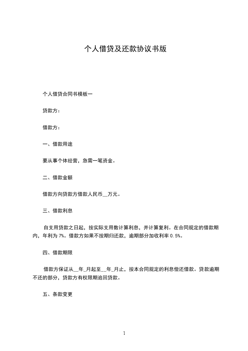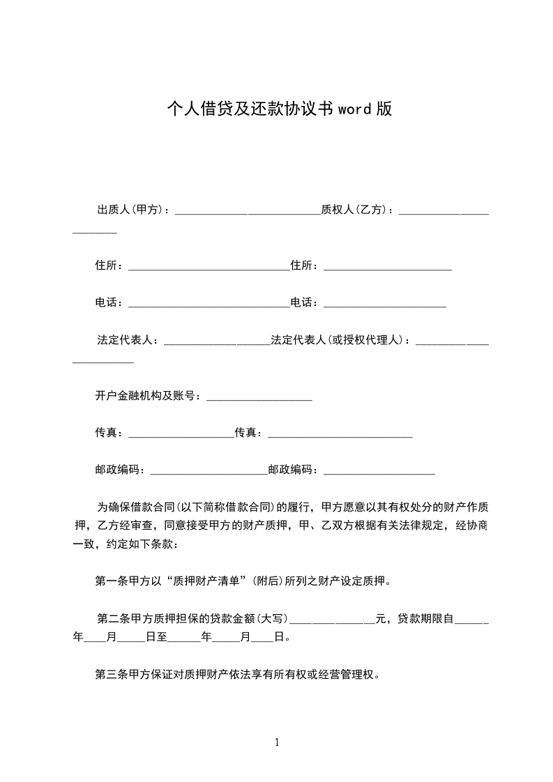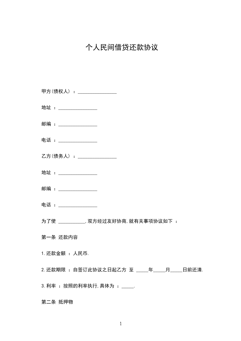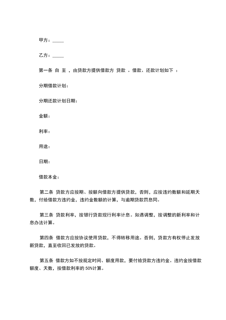第一条 自_______年______月______日至_______年______月______日,由出借方提供借款方借款计人民币_________元。还款计划如下: