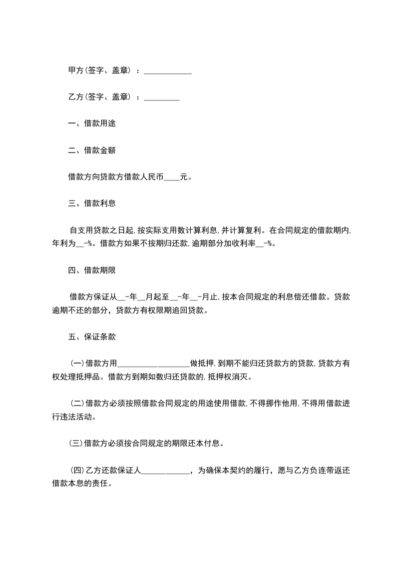 第五条 借款方的借款由担保人用_______作担保,担保期限为_______,担保范围为为借款方偿还本息和逾期罚息。