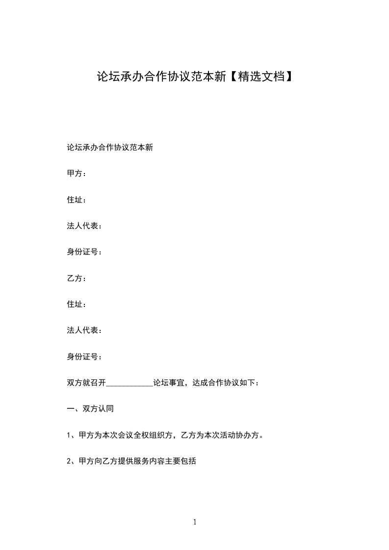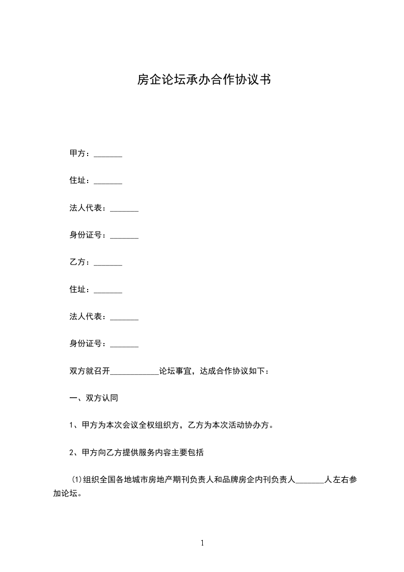 双方就召开____________论坛事宜,达成合作协议如下: