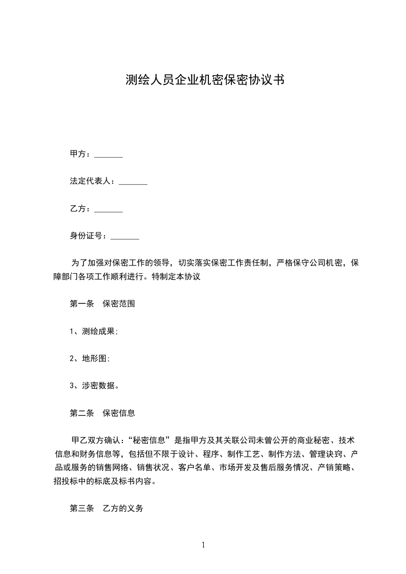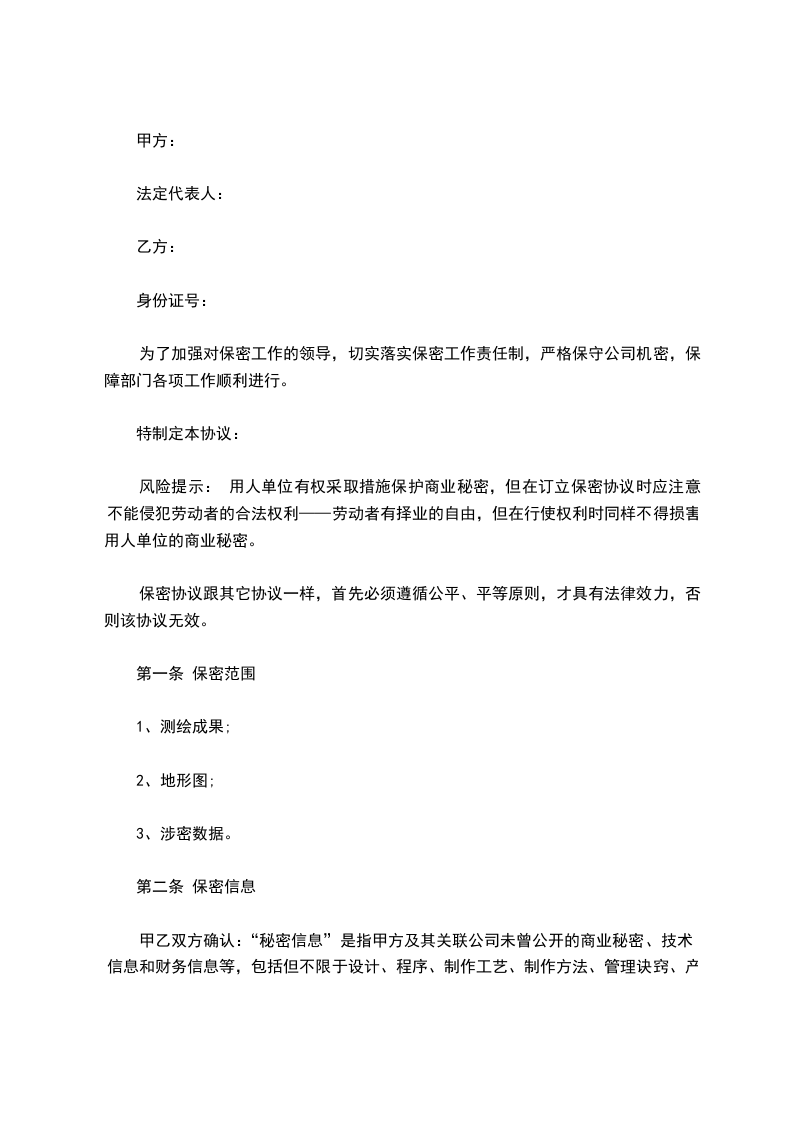 为了加强对保密工作的领导,切实落实保密工作责任制,严格保守公司机密,保障部门各项工作顺利进行。特制定本协议